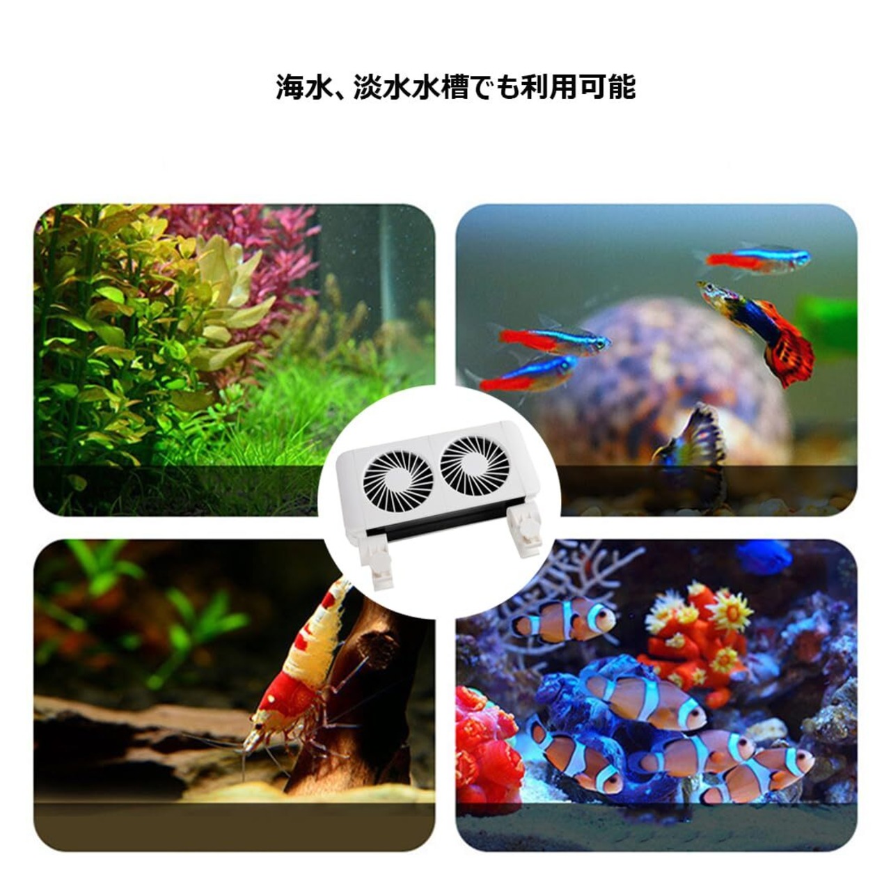 「静音設計」騒音防止のデザインを採用していて、とても静音で、 淡水・海水水槽でもご利用できる水温上昇ファンです。