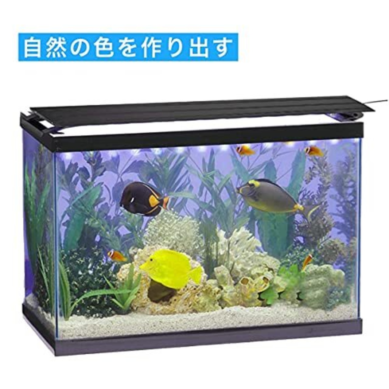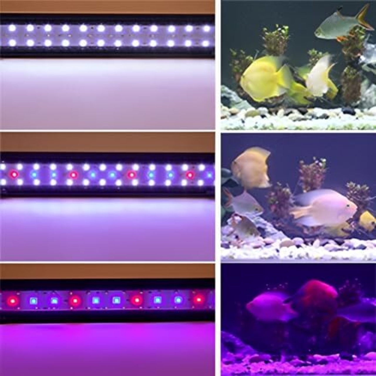 【明るさ調整可能】水槽用照明ライトはホワイト・ブルー・レッドの3種類の色の24個LEDビーズがある、3つの照明モードの変更で、魚、水草、水の究極の美しさを実現できます!また、5段階で光の明るさを調整できます。さまざまな照明効果を調整して、水槽に健康で活気がある環境を提供することができます。