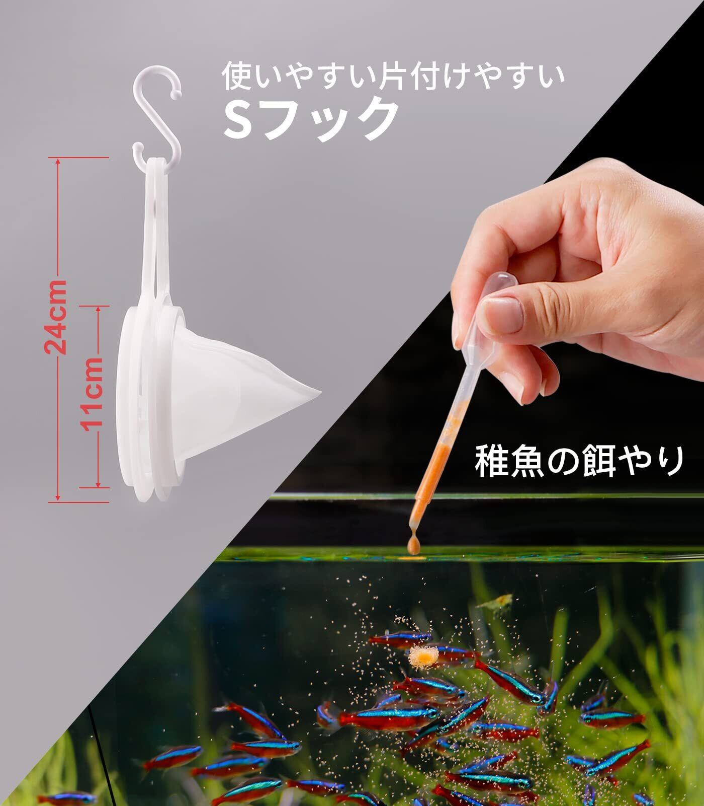デザイン: 丸い粗い目のメッシュは塩水エビの殻を濾し、 円錐v型細かい目のメッシュは塩水エビを集めやすくになります。