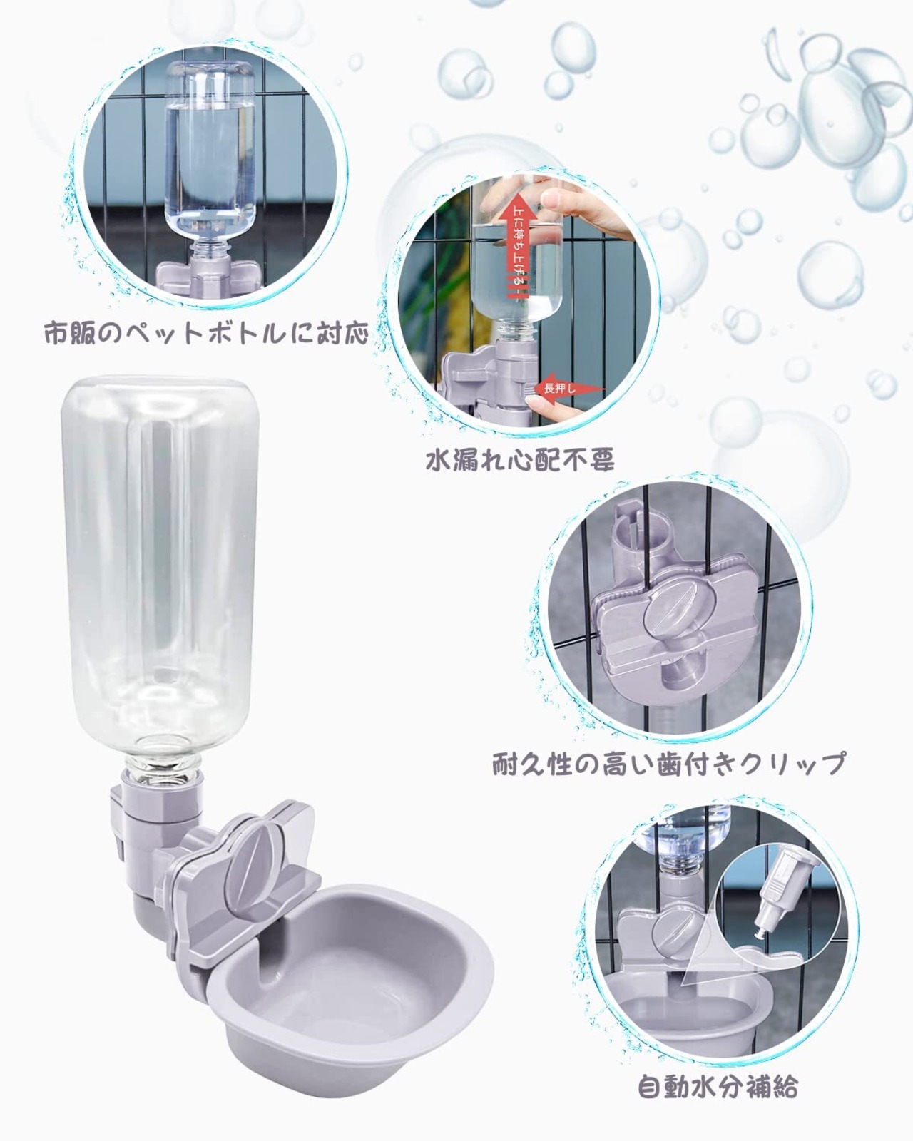 Beraypoo 犬 猫 水飲み器 給水器 ペットボトル 使用可能 ケージ 取付型 電源不要 お留守番対応 熱中症を防ぐ 転倒防止 漏れ防止 ペット用品 (パープルグレー, 水飲み器)