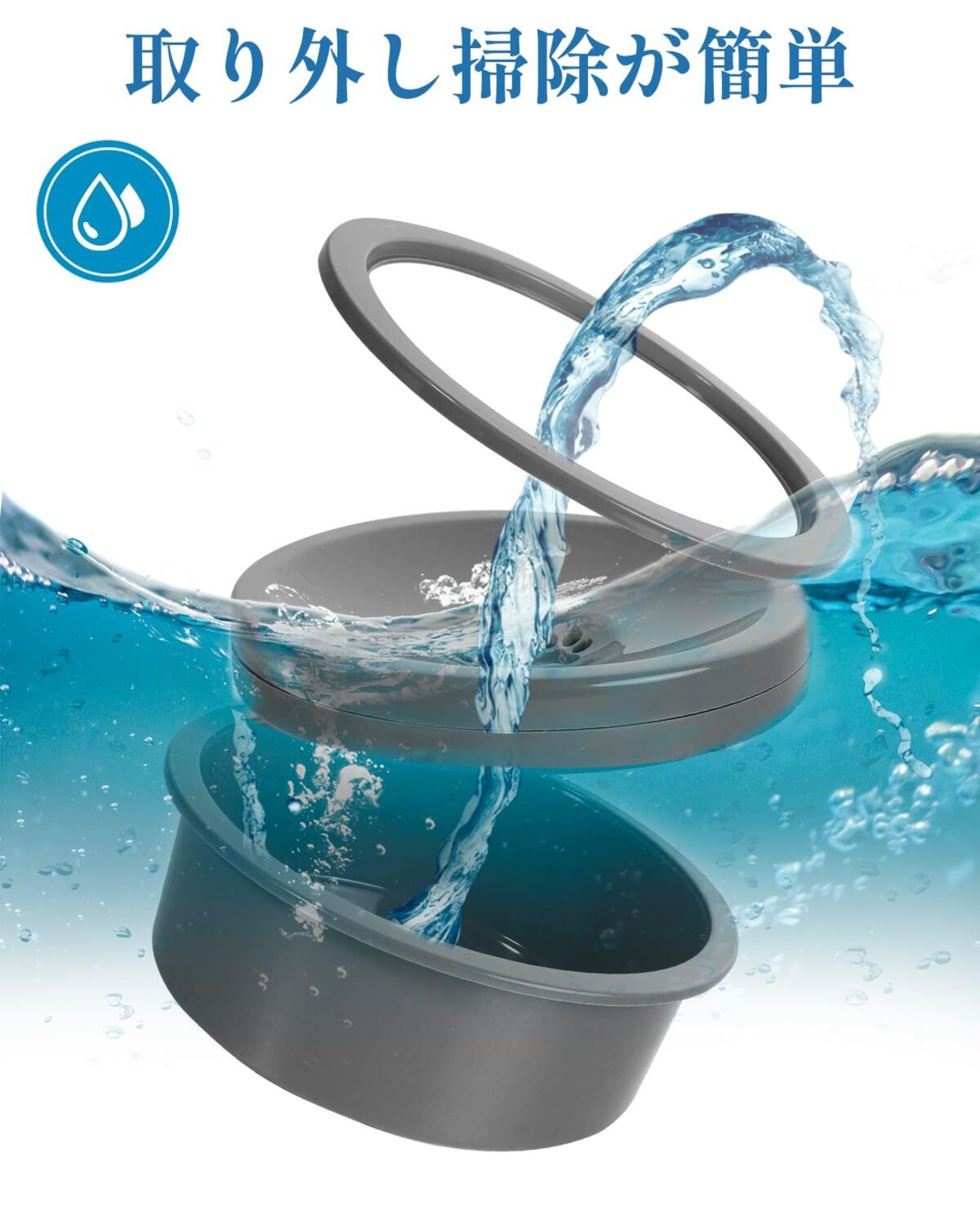 【電源不要 × 分解式構造|持ち運び・手入れ簡単】電気配線不要の簡便設計で、水を注ぐだけですぐに使用可能。外出先や車中でも手軽に設置でき、旅行やドッグランでの活用も便利です。本体と浮き蓋は分解可能で、手洗いはもちろん食器洗い機対応(※洗い網使用推奨)。週 2~3 回の洗浄で細菌繁殖を防ぎ、長期間の衛生的な使用が実現します。