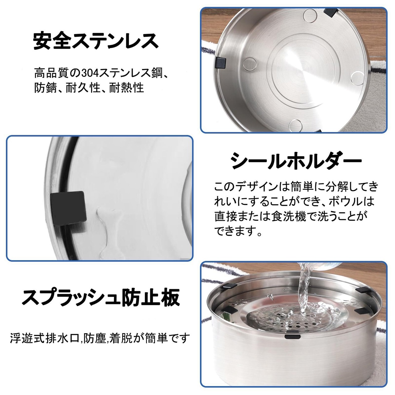 【持続可能な材料】食品グレード304ステンレス製で、水タンクとフロートは汚れに強いです。また、滑らかな表面が取り外し可能なのでお手入れが簡単で、食洗機にも対応します。