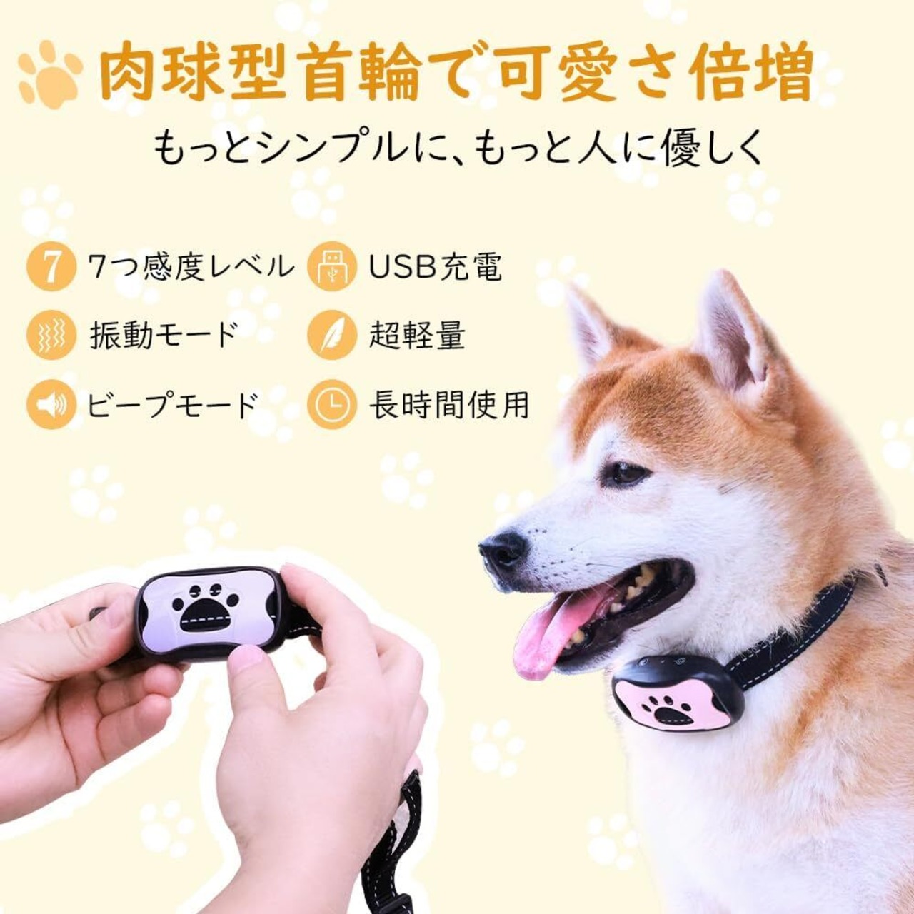TTFP 無駄吠え防止首輪 小中型犬専用首輪 53g超軽量 電流ショック不使用 全自動 7段階ピーの音&振動 防水 しつけグッズ 日本語説明書付き(肉球 ピンク)
