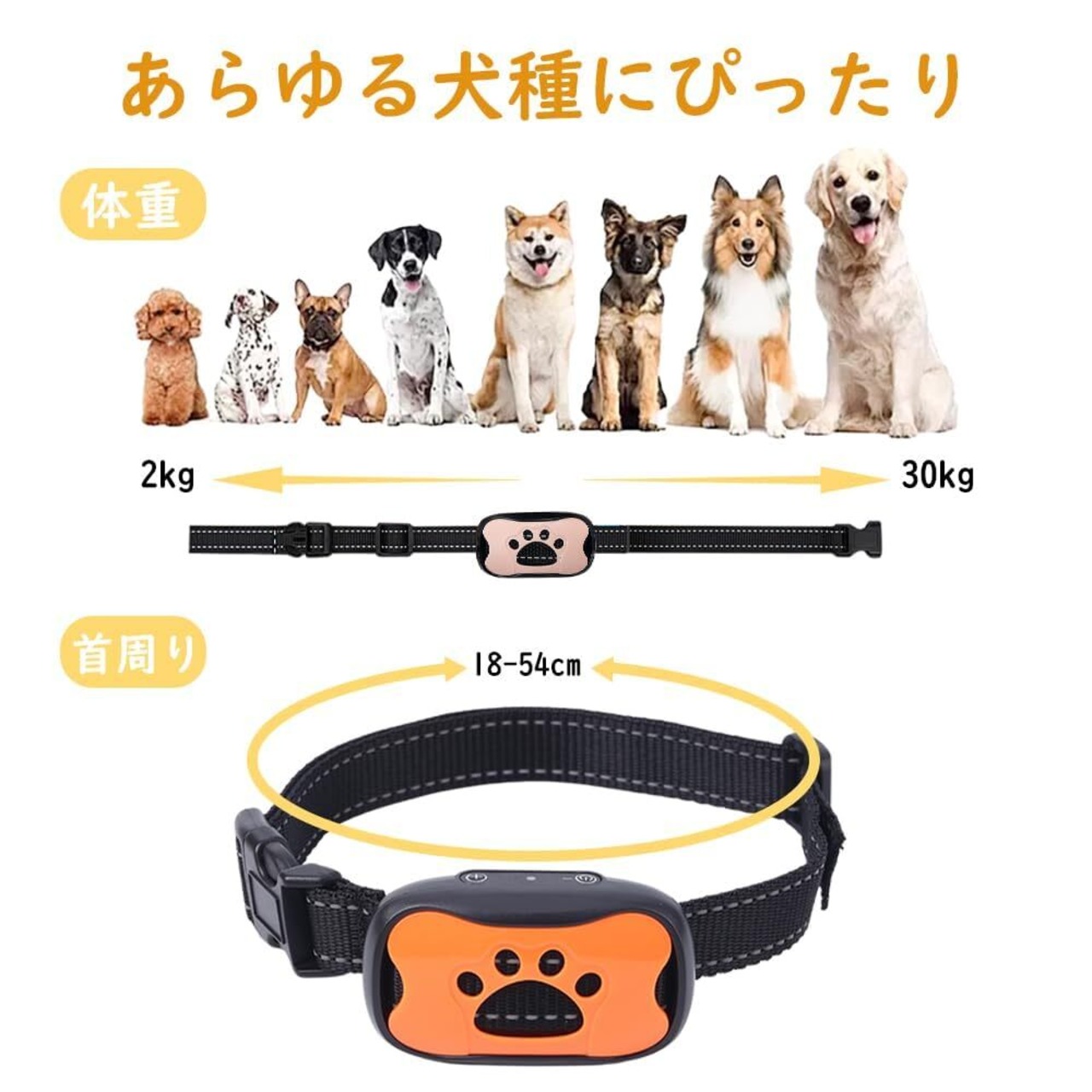 【幅広い犬種に対応】首周り18-54cm、体重2kg-30kgの犬に対応。中型犬から大型犬まで使用できる犬吠え防止グッズです。