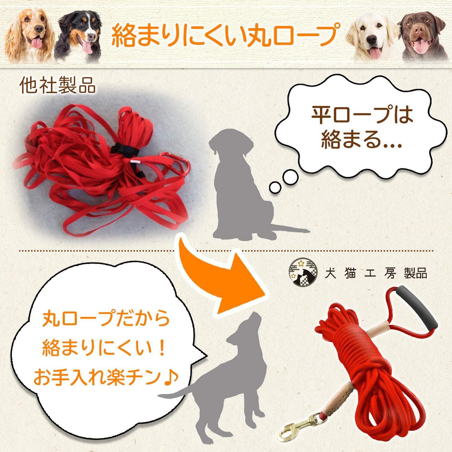 【 10m 15m 20m の3サイズ・ブラック ブルー レッドの3色をご用意 】より細かいニーズに答えられるよう、9つの種類を生産致しました。【素材】ナイロン【サイズ・重量(梱包時)】「10m」 40×21×6(cm) 400g 「15m」 40×24×7.5 550g 「20m」 40×35×8.5 800g 商品の仕様上カットして長さ調節はできないため、もし長さが合わなければ30日間「無料でサイズ交換致します」。製品に問題がございましたら、Amazonの購入履歴より弊社までお気軽にお問い合わせください。【販売者保証元】犬猫工房