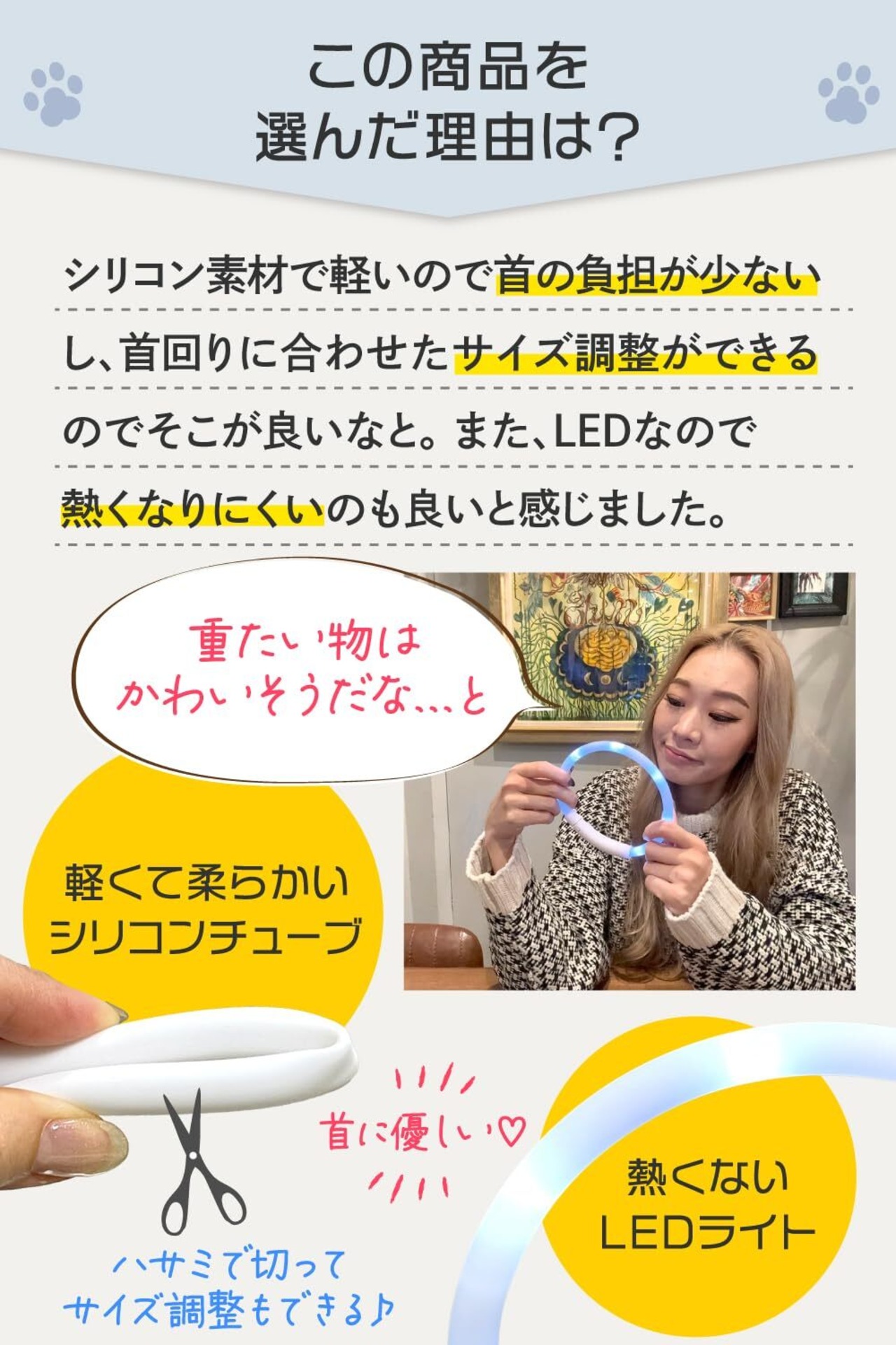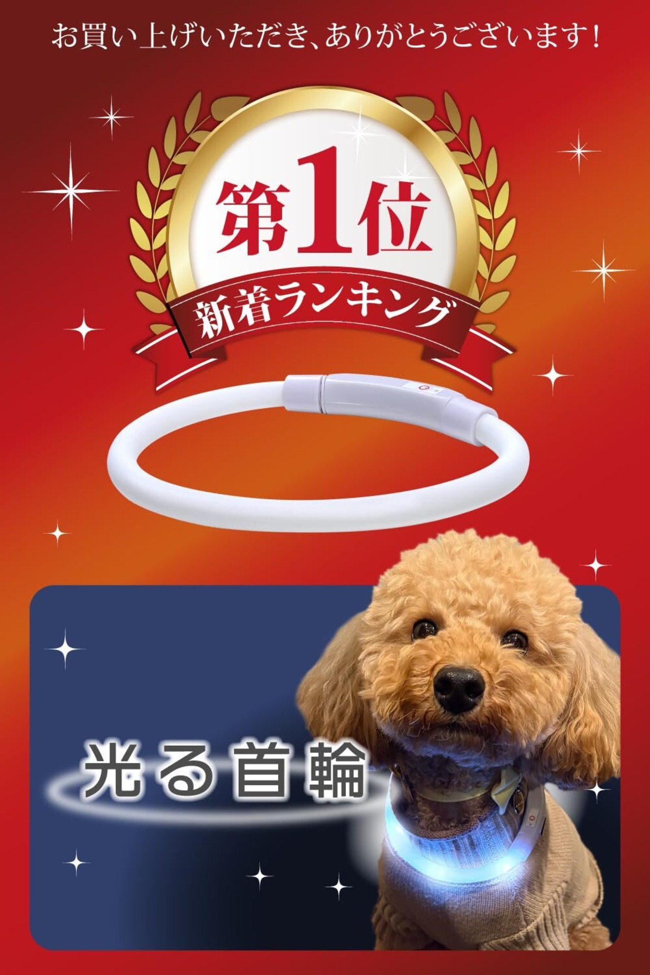 【トイプーのなむちゃん愛用!】光る首輪 LED 【3分充電で90分使用可能】(小型犬専用xサイズ調整可能)フル充電30分で4時間使用可能 (ホワイト M:50㎝)