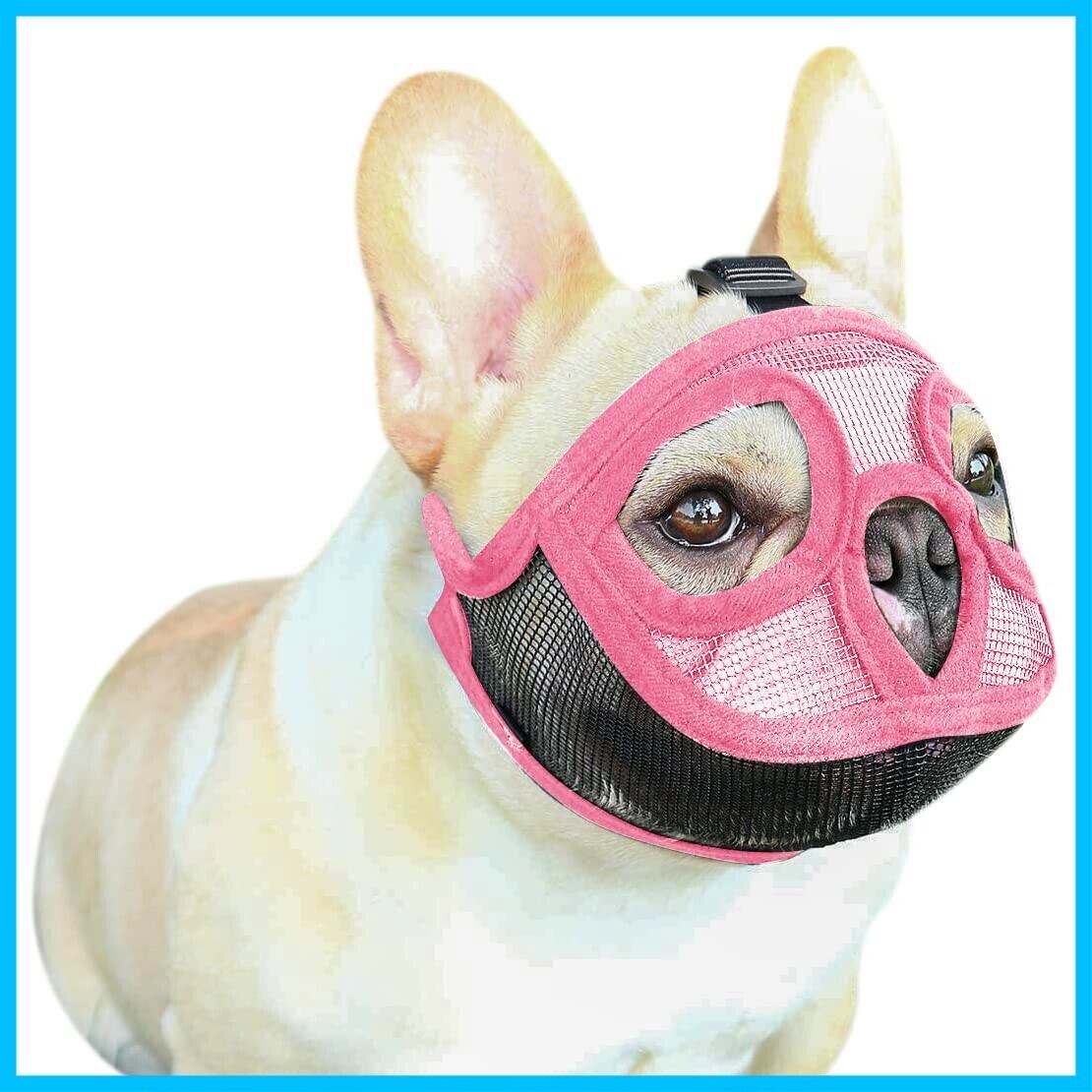 メッシュ口輪 犬用マズル フレンチ・ブルドッグマズル 丈夫 通気 鼻短い ドッグマズル しつけ用口輪 調節 可能 噛みぐせ/むだ吠え/キズ舐め防止 拾い食い防止 マズルカバー マズルガード イギリス・ブルドッグ ペ キン・パグ 小中大型犬用 マウスカバー ペット用品 ピンク