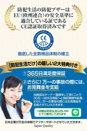 【仕様】・検知方法 振動検知式 ・電源 LR44ボタン電池×3個(内蔵) ・電池寿命 約1年 ・音量 130db ・外形寸法 W51×H64×D9mm ・重量 本体23g ・使用範囲 屋内専用