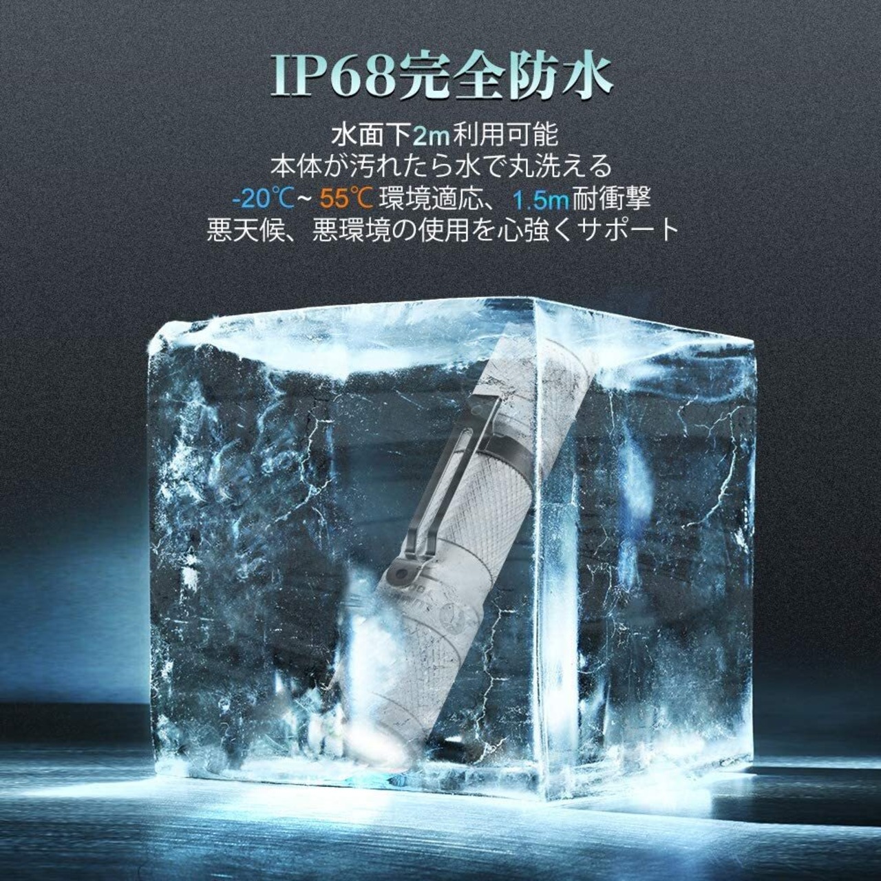 【IP68完全防水・優れた耐久性】Tool AAミニライトはJIS(日本工業規格)の最高レベル「IP68」を取得済み、「粉塵の侵入を完全に防ぎ、かつ水流や長時間の水没にも耐える」という耐塵防浸型です。水深約2メートルの環境でも、心配しなくて正常的に点灯できます。ライトが汚れたら水で丸洗いてもOK!ライト内部は衝撃吸収材を用いられて、ダメージレス構造より、1.5メートルの落下耐久を持ちます。悪天候、悪条件下のご使用を力強くサポートします。