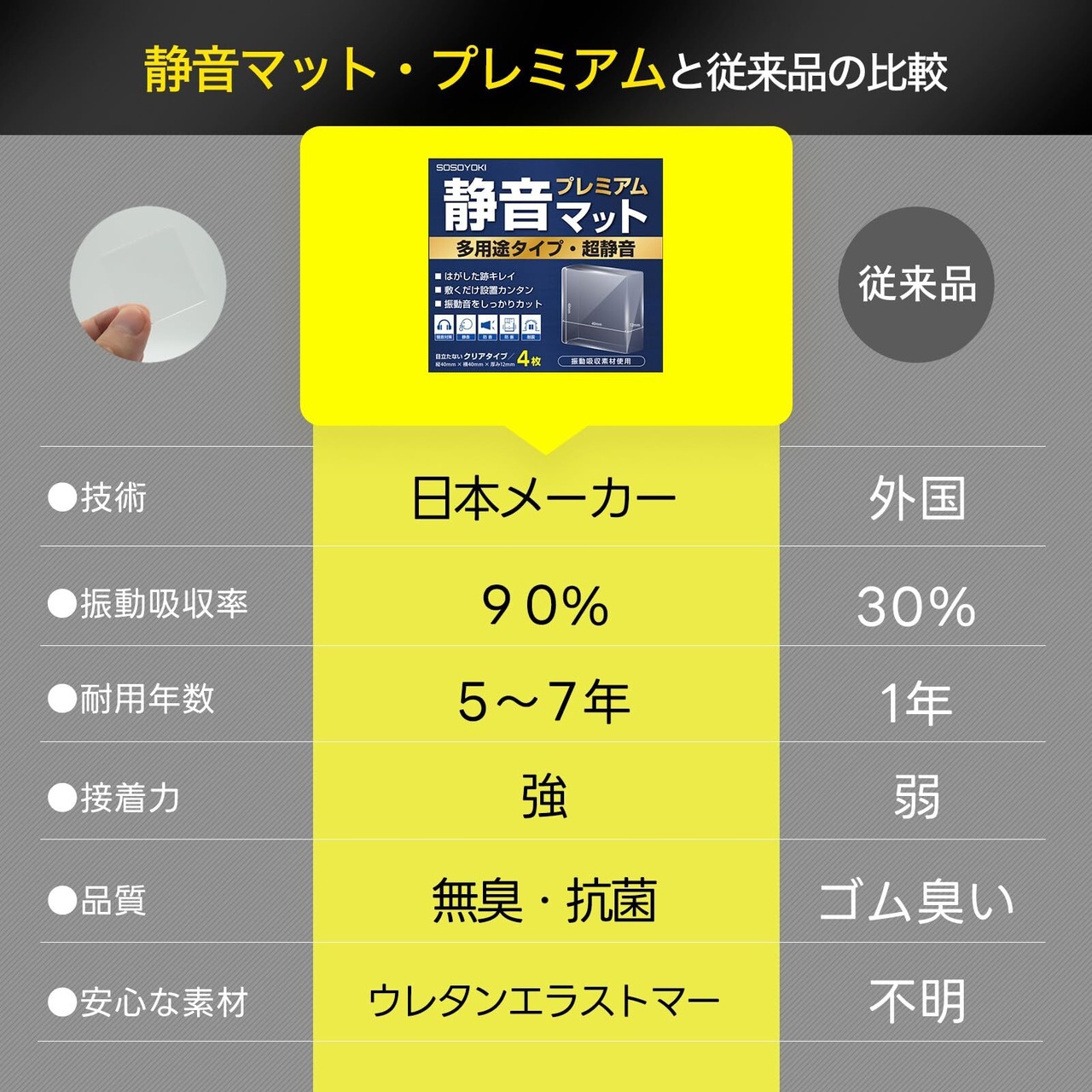 【SOSOYOKI】静音マット・プレミアム 多用途タイプ 静音 防音 防振 騒音対策 振動防止 40×40×12mm クリア 4枚入り