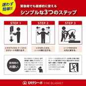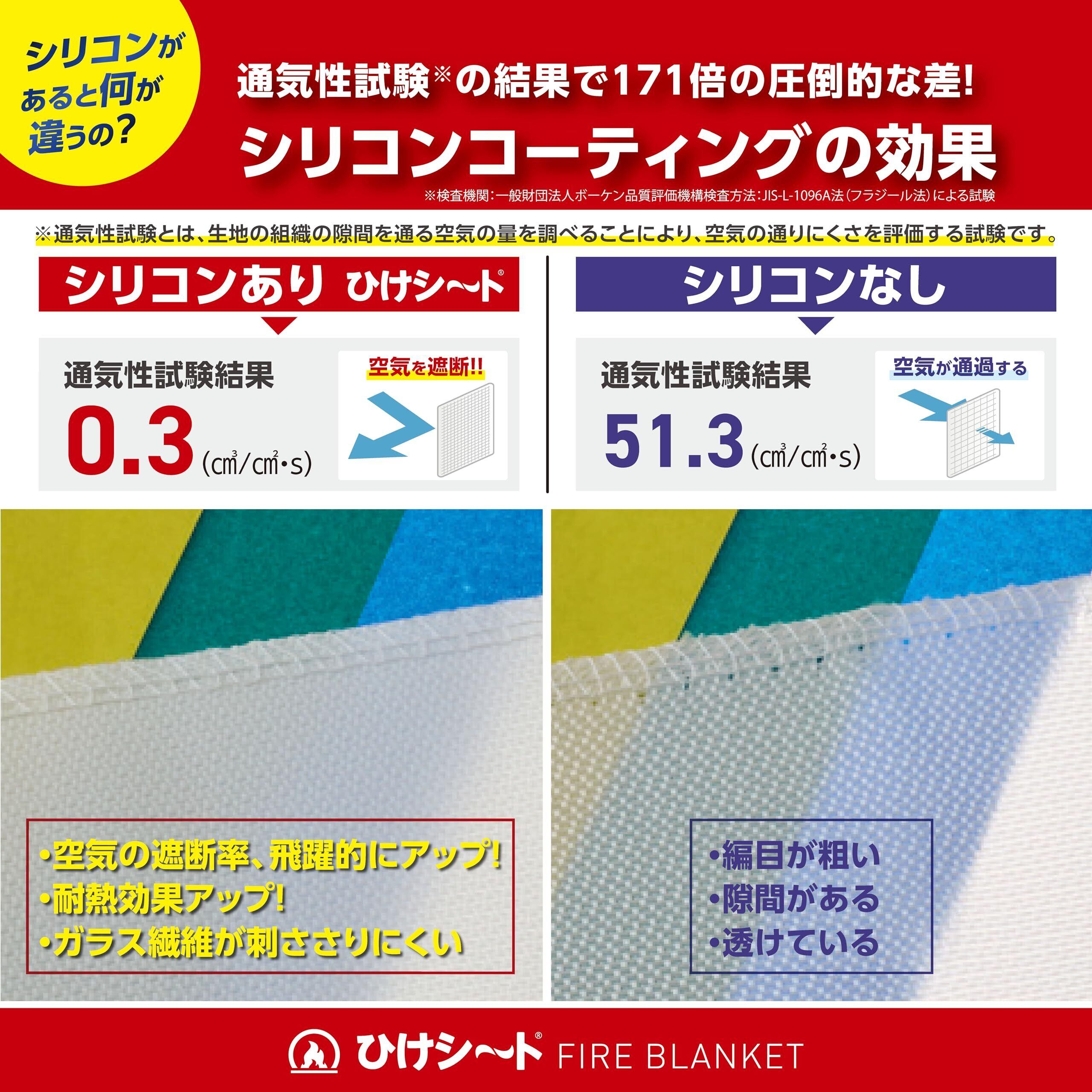 ガラス繊維のシートに窒息消火の効果を高めるシリコンコーティングを施しています。消火器に次ぐ「セカンド消火ツール」として最適です。