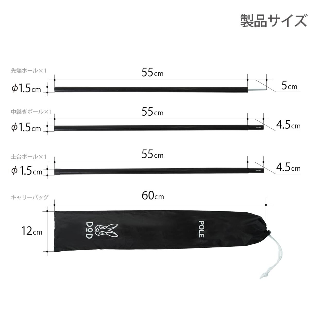 DOD(ディーオーディー) テント タープポール 2本セット ペグ&ロープ&収納袋付 XP-01