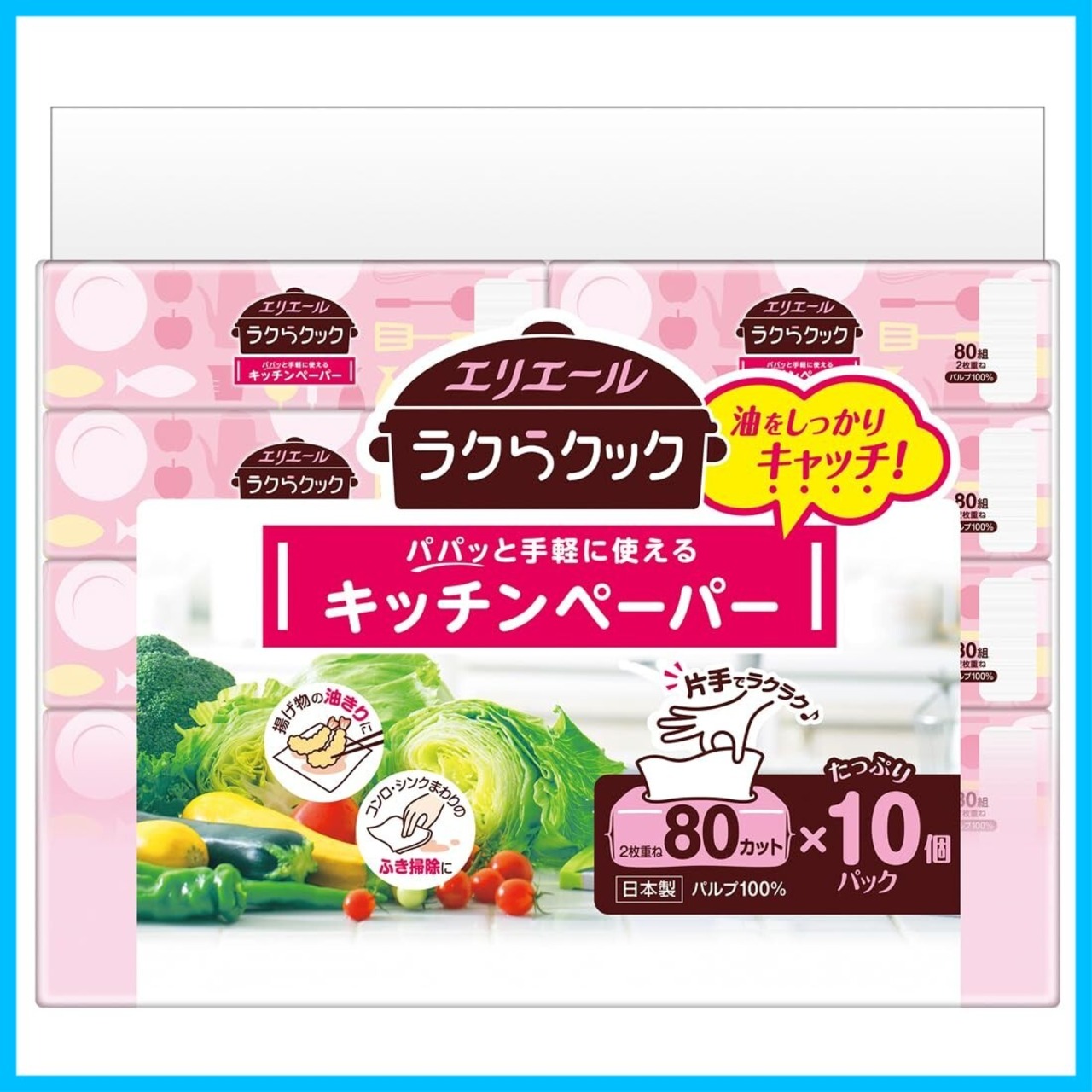 エリエール キッチンペーパー ラクらクック パパッと手軽に使える 80組×10パック