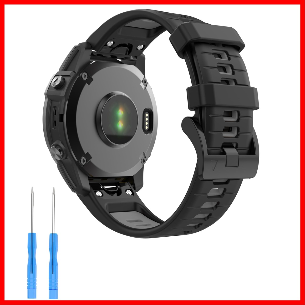 Fenix 8 47MM バンド ATiC 替えベルト クィックリリース式 取替え簡単 ガーミンウォッチ交換用バンド シリコン製 ソフト 通気性高い スポーツ向き Fenix7Pro/Solar/Sapphire Solar/EPIX gen2/Fenix6 GPS/Fenix5/Quatix5/Forerunner965/955/945/935 BlackGray