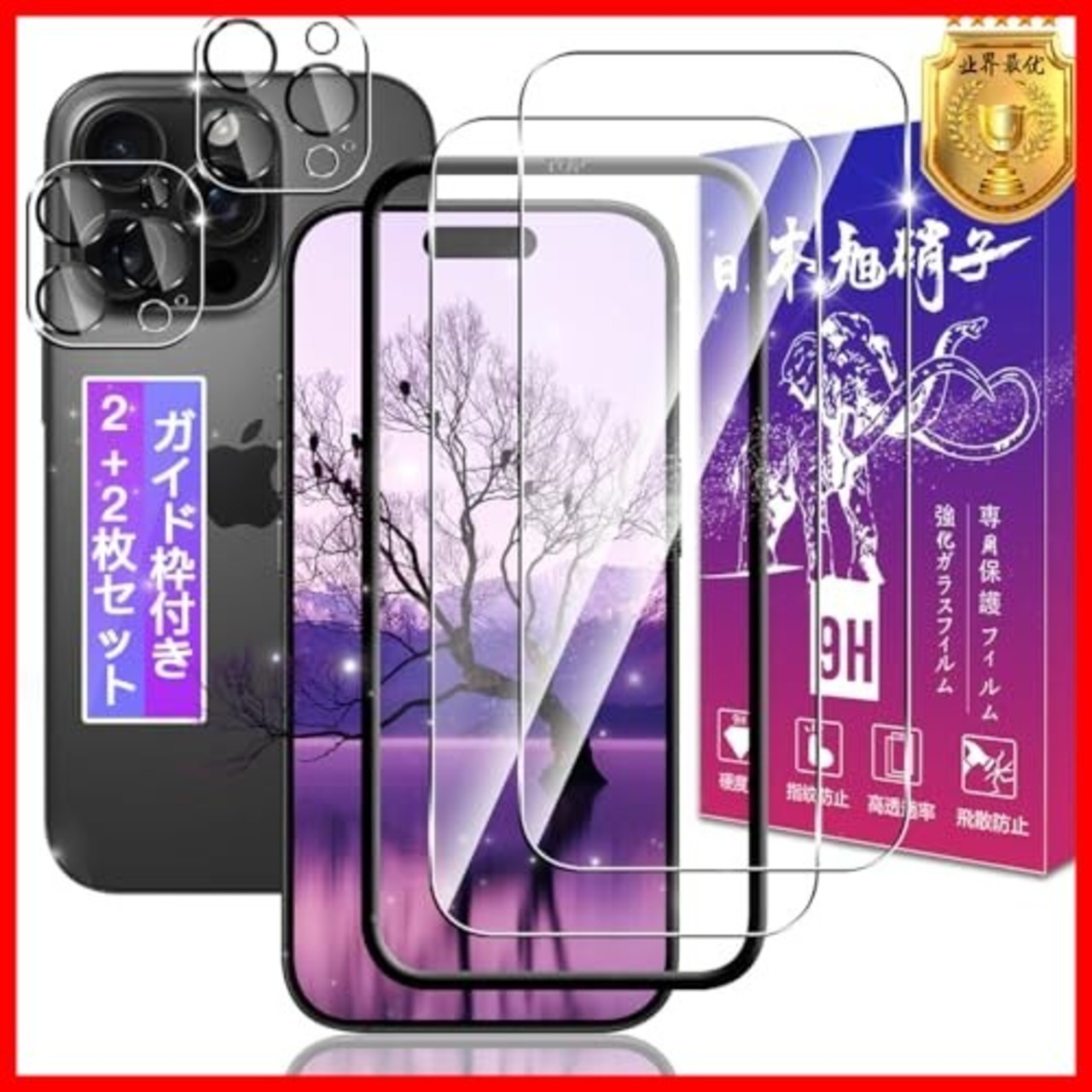 対応 iPhone 16 Pro ガラスフィルム 2枚 + iPhone16Pro レンズフィルム 2枚 6.3インチ 【ガイド枠付き 日本旭硝子製】 対応 いPhone16Pro フィルム アイフォン16Pro 用 保護フィルム ケース カバー 高透過率 硬度9H 飛散防止 指紋認証対応 3D 高感度タッチ 気泡防止 耐指紋 撥油性 ラウンドエッジ加工 簡単貼り付け FAMROLLS正規品