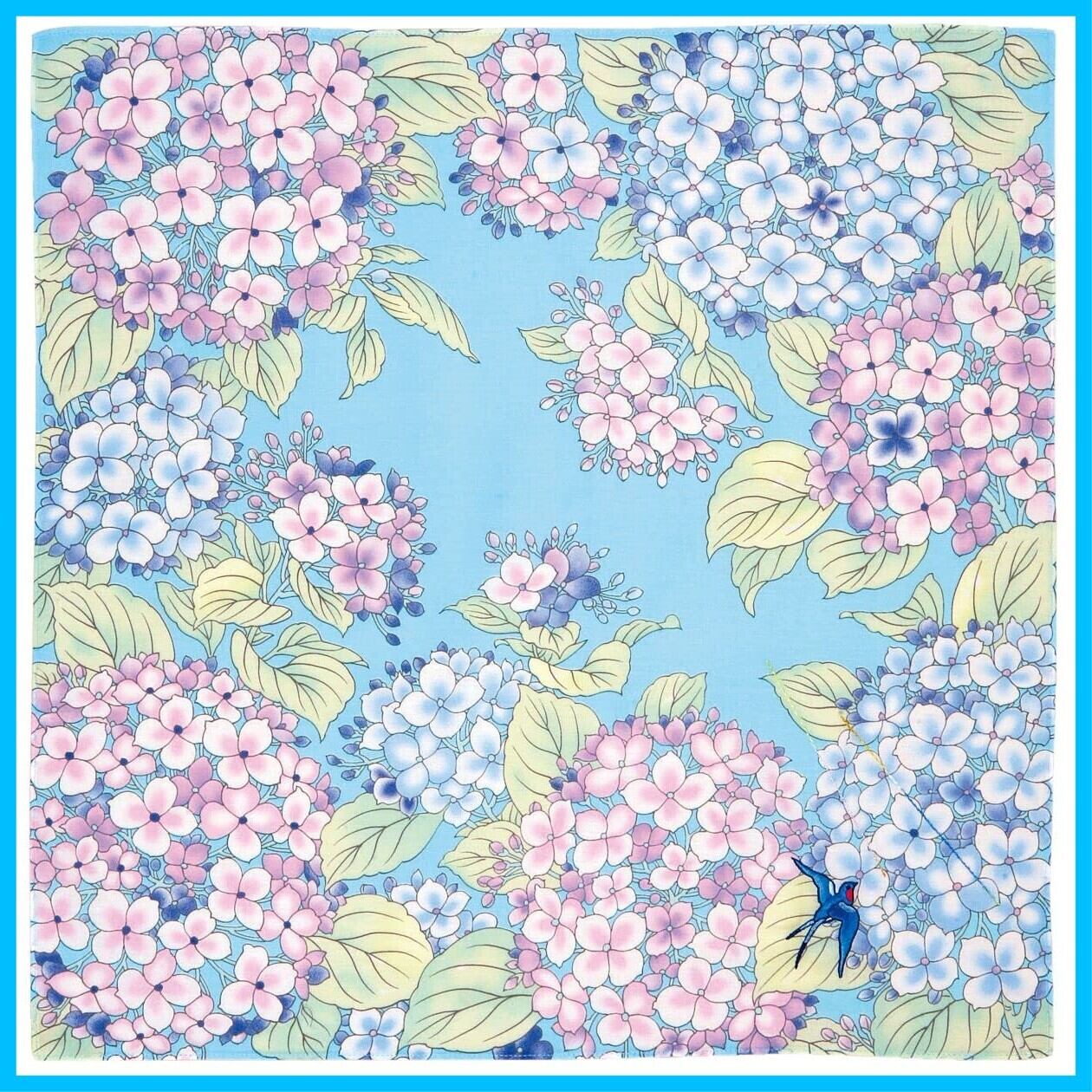 山本仁商店 en.gawa. 刺繡ハンカチ 紫陽花 Bブルー 【1780-B】 花柄 日本製
