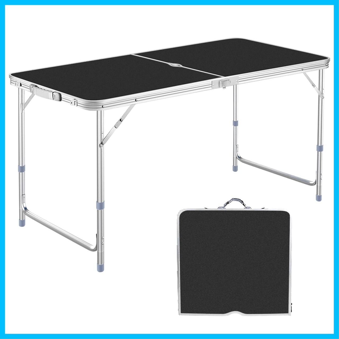 DesertFox キャンプテーブル アウトドア テーブル 折りたたみ 120cm 3段階高さ調整可能 ピクニック レジャー キャンプ用 折畳み コンパクト 収納 簡単組立006 (くろ,シングル)