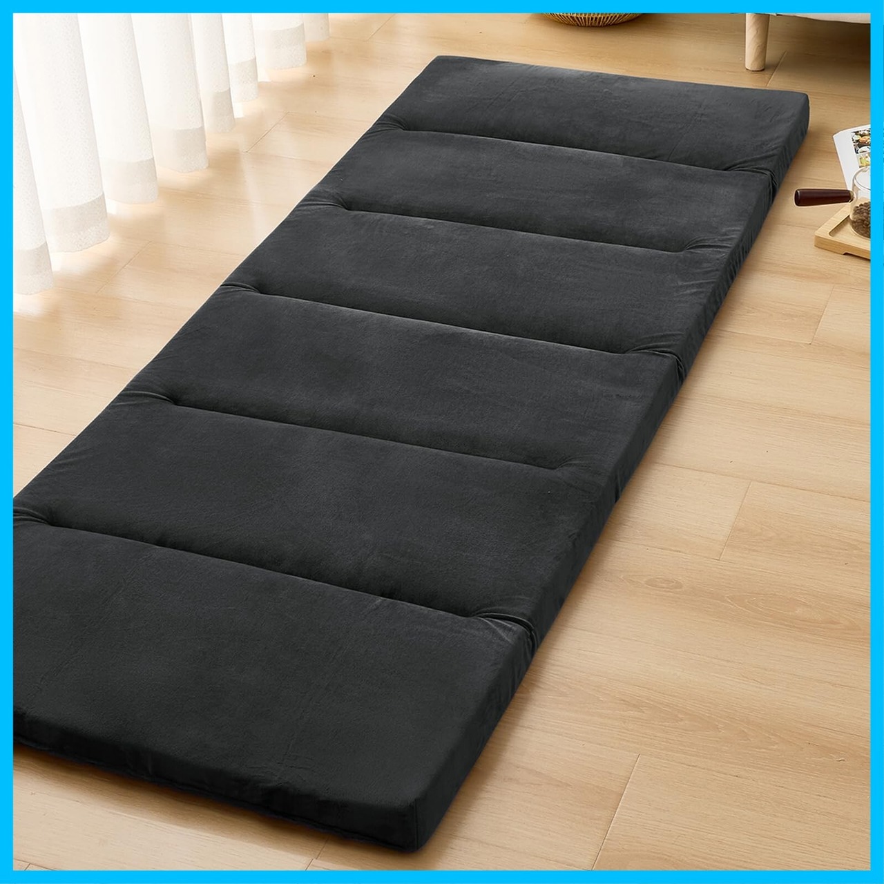 Housecover 長座布団 ごろ寝マット 大人 お昼寝マット お昼寝布団 180cm 高反発ウレタン190N 厚さ5cm 硬め 折りたたみ 車中泊マットごろ寝布団 昼寝用マット 畳める 体圧分散 底付き感無し 高耐久 抗菌防臭 防ダニ 五つ折り コンパクト収納 簡易マットレス ごろ寝クッション (70cm×180cm, ブラック)