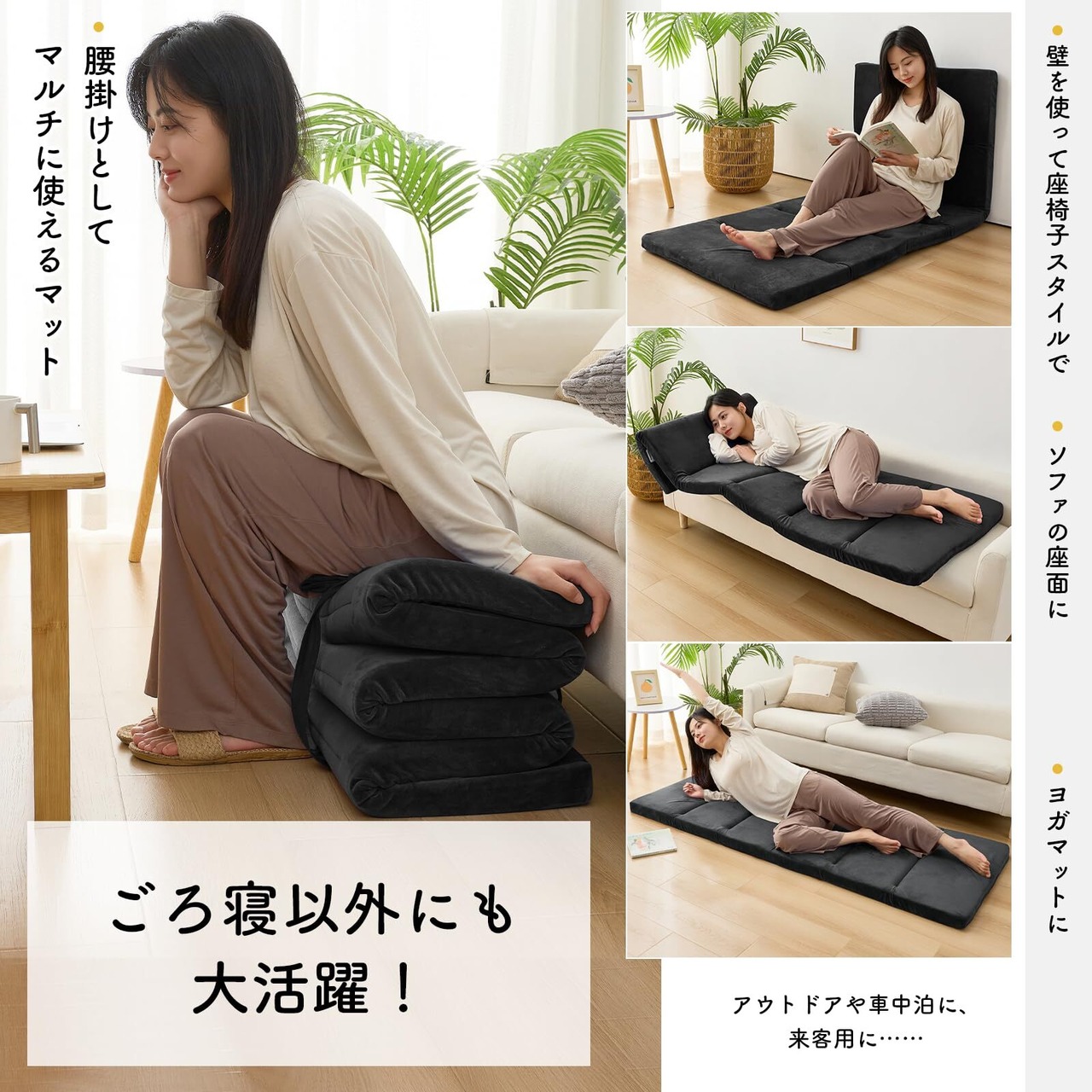 【ごろ寝以外にも大活躍】家でのリラックスタイムはもちろん、車中泊やキャンプなどのアウトドアや、来客用など様々な用途でマルチに使えます。【商品仕様】 サイズ:70x180cm 厚さ:約5cm 側生地:ポリエステル100% 詰め物:高反発ウレタンフォーム 重量:約1.9kg