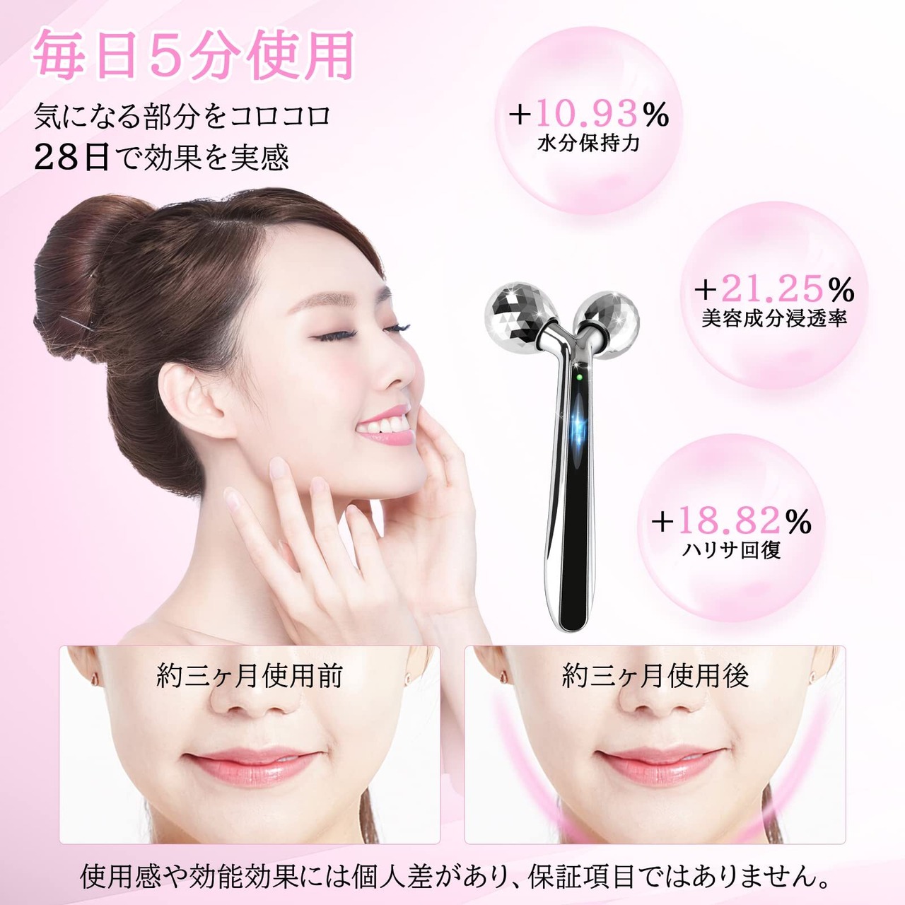 【多機能な美顔器・美容器】顔も身体も一緒にケアしたい方へオススメです。顔のハリ低下、むくみの原因は老廃物の蓄積によって起こります。身体のめぐりをイメージしながら、美顔ローラーでロコロコするだけ。肌の曲線に合わせてスムーズに密着して動くので、お悩みの部位をつまんで、揉んで、不要なお肉をマッサージしてくれます。小顔を実現するだけでなく、気になるボディのお肉もつまみあげ、スレンダーな首と引き締まった腕とウエストを実現できます。