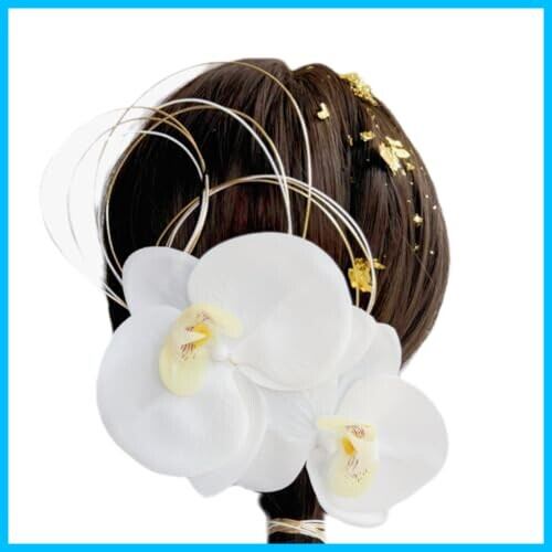 胡蝶蘭 髪飾り 和装 成人式 ボブ 浴衣 振袖 編みおろし ヘアアクセサリー 結婚式 袴 着物 髪留め 成人 式 白 シロ ホワイト 造花 金箔ヘア用 水引き 振り袖 フルセット 胡蝶蘭髪飾り[lalabeauty]