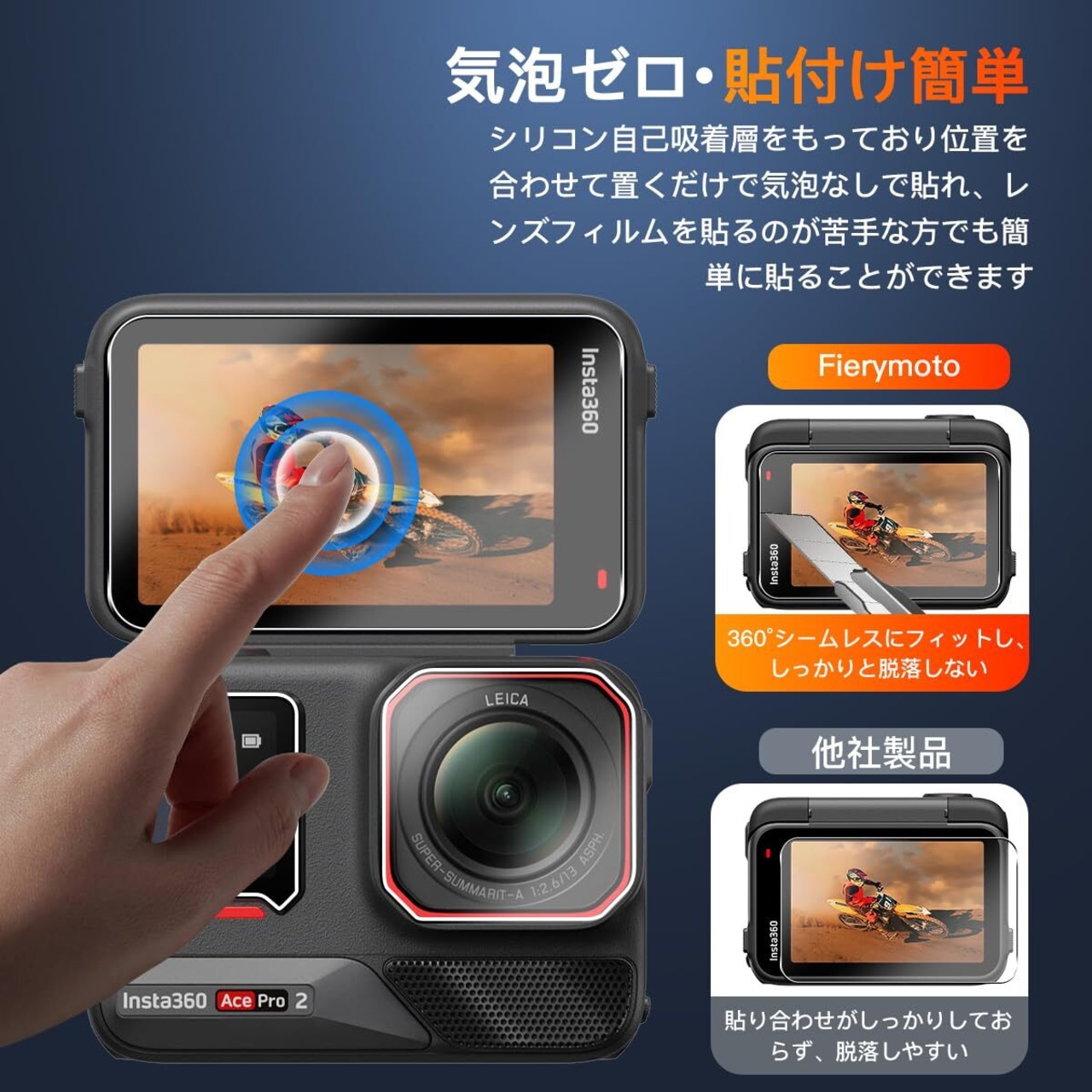 【対応機種·専用設計】対応 Insta360 Ace Pro 2 ガラスフィルム ご注意: ご購入前にお使いのカメラのモデルをご確認ください【月販20,000部が突破したお得な6枚セット】 画面保護フィルム2枚とレンズ保護フィルム2枚のお得なセットはお、ご家族にシェアしたり、家庭予備用としてもご利用いただけます。