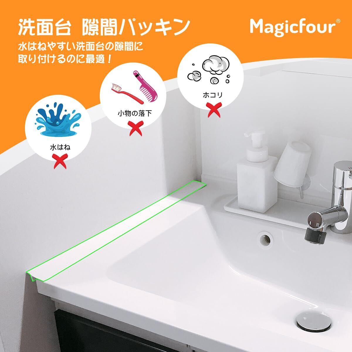 Magicfour スキマパッキン 洗面台 隙間パッキン 2本 隙間ガード 水はね防止 ゴム 接着剤不要 裁断可能 落下 洗面化粧台 流し台 シンク 浴室 台所 コンロ用