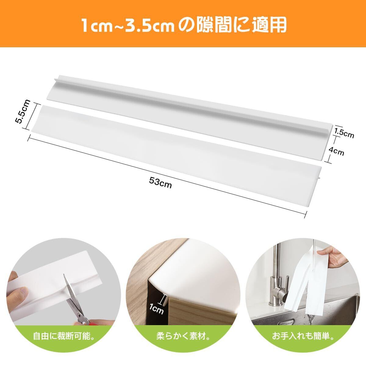 【裁断可能】1cm~3.5cmの隙間に適用。シリコン素材が柔らかく、さまざまな形の隙間に適し、必要に応じて長さを自由に裁断することができます。約縦1×横5.5×長さ53cm。