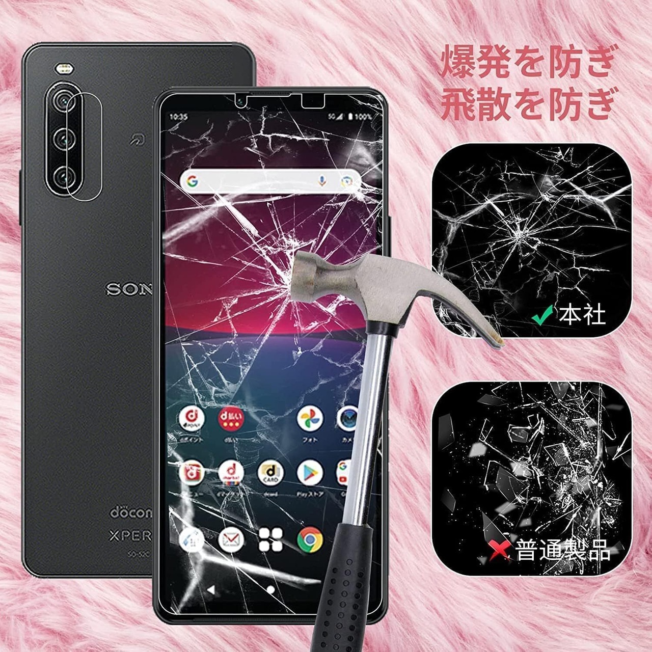 【2+2枚セット】Xperia 10 IV SO-52C 用の カメラフィルム+ エクスペリア10 IV 用の ガラスフィルム 旭硝子 xperia10 iv (SO-52C/SOG07/A202SO) 用の 強化ガラス 液晶保護 耐衝撃 高透過率 9H硬度 気泡ゼロ