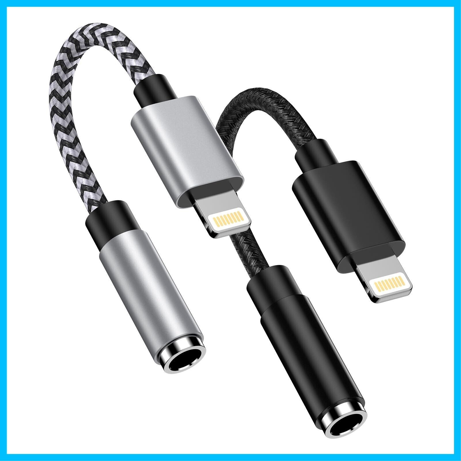 iPhone 変換アダプタ イヤホン ジャック Lightning - 3.5mm イヤホン 変換ケーブル MFi認証/2本 イヤホン・ヘッドホンアダプター ライトニング 3.5mm 変換 音量調節/音楽対応iPhone14/13/12/11/iPadなど対応 0.18m