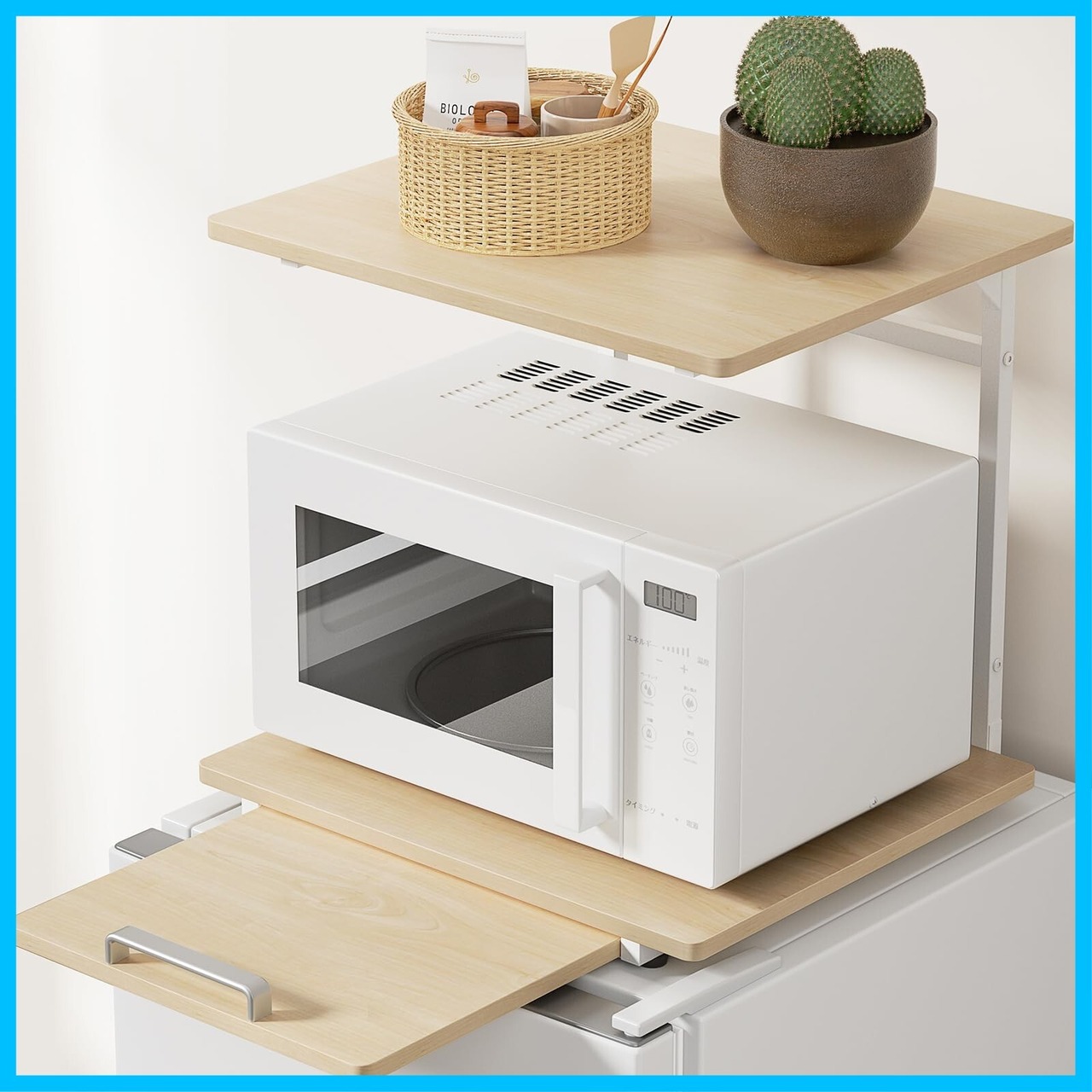 TKUIN 冷蔵庫上ラック レンジラック 幅47.5×奥行43.5~69.5×高さ45cm 2段 スライドトレー付き オーブントースター冷蔵庫上収納 整理棚 上棚耐荷重10Kg 安定・丈夫 レンジ台 引き出し 電子レンジ上収納 スリム 省スペース 北欧 新生活 一人暮らし おしゃれ (Natural)