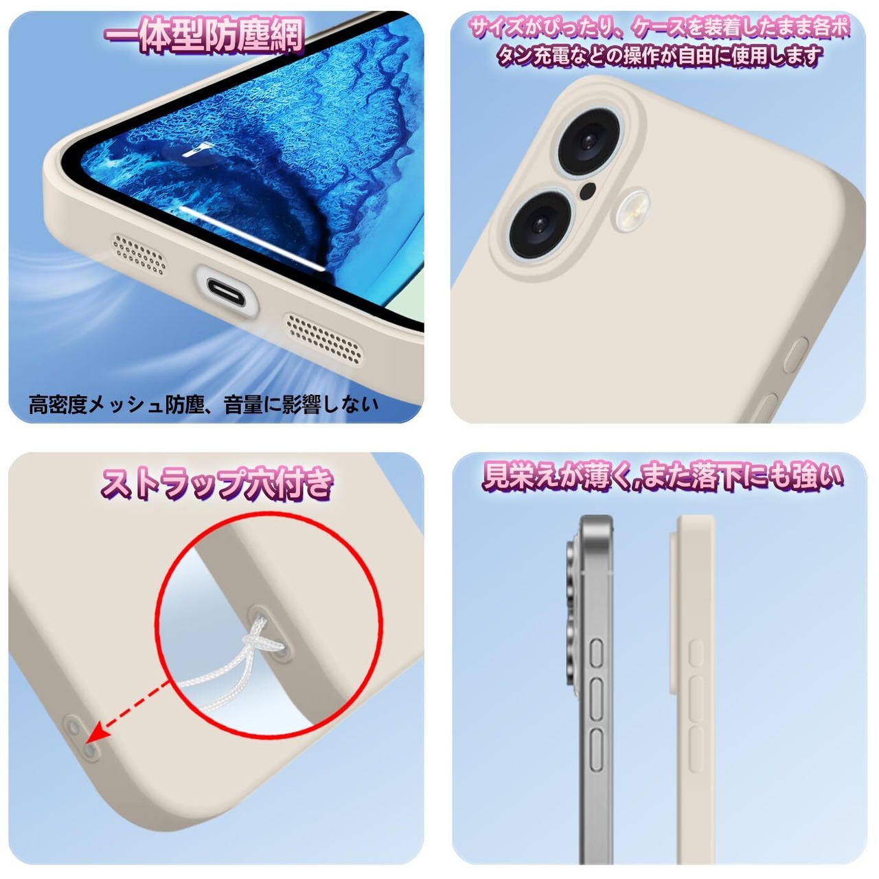 iPhone 16 用 ケース シリコン 液体シリコン 耐衝撃 アイフォン16 カバー 薄型 軽量 ソリッドカラー シンプル ストラップホール付き マット感 人気 指紋防止 レンズ保護 ソフト ワイヤレス充電対応 (ホワイト)