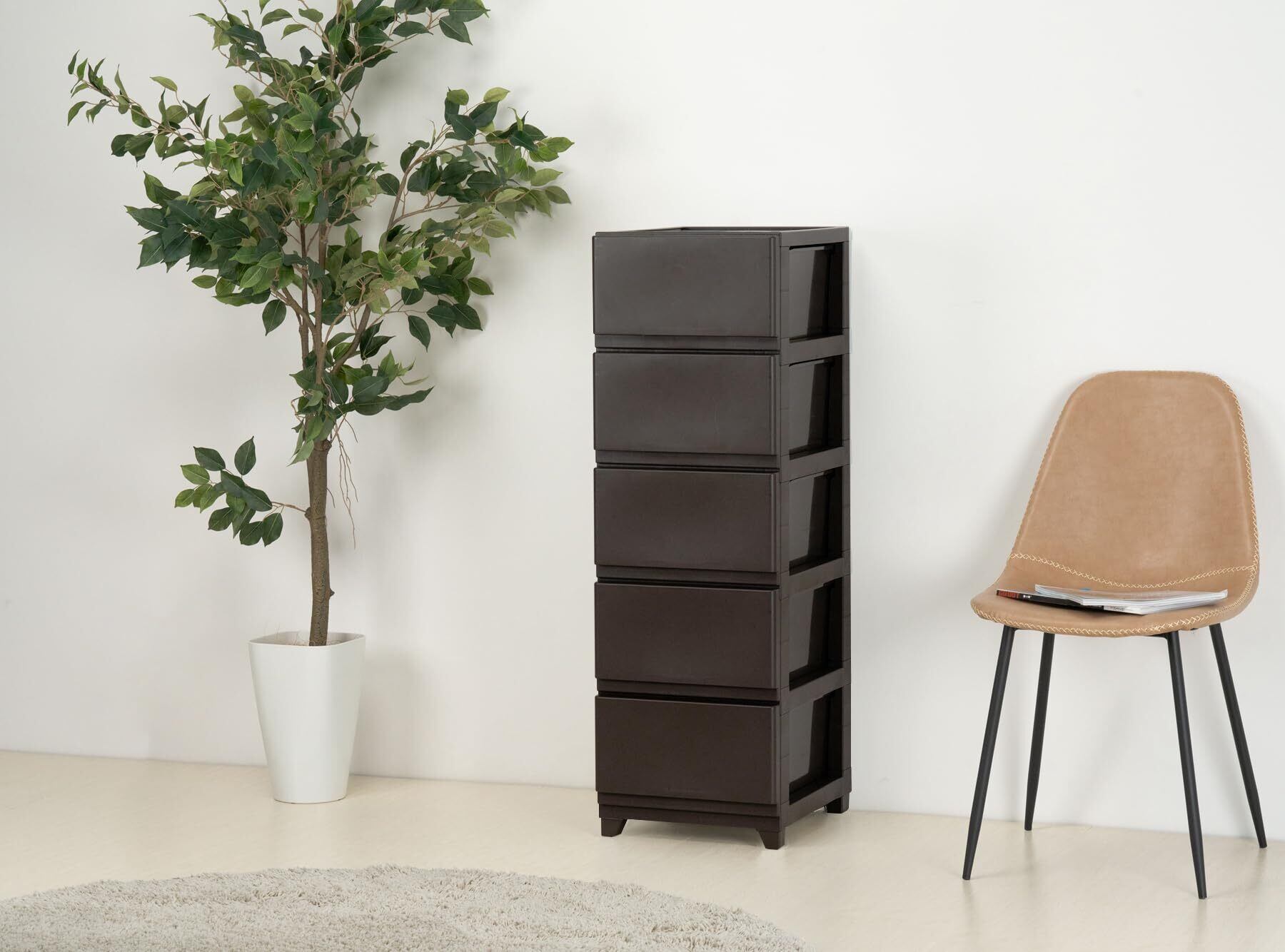 JEJアステージ(JEJ Astage) 収納チェスト デコニー シーヴォ 5段 ダークブラウン 日本製 簡単組立 幅34×奥行41.5×高さ106.1cm