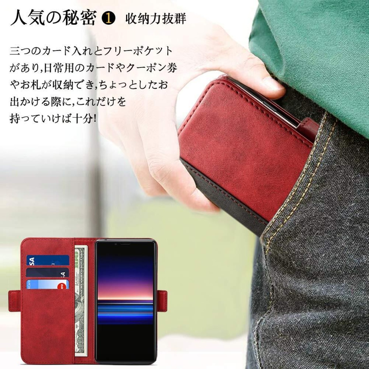 Xperia 1 ケース 手帳型 SO-03L SOV40 802SO スマホケース Rssviss エクスペリア カード収納 カバー 手帳 サイドマグネット スタンド機能付き 保護力 高級PUレザー レッド Sony Xperia 1対応