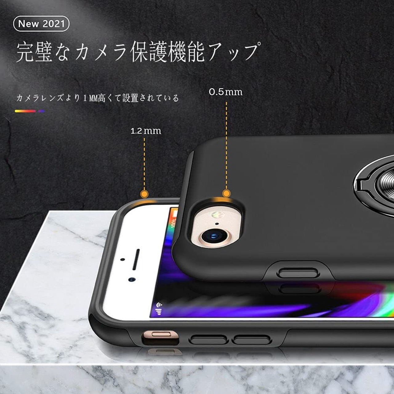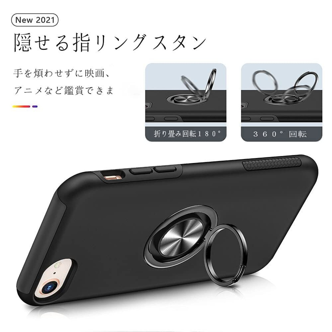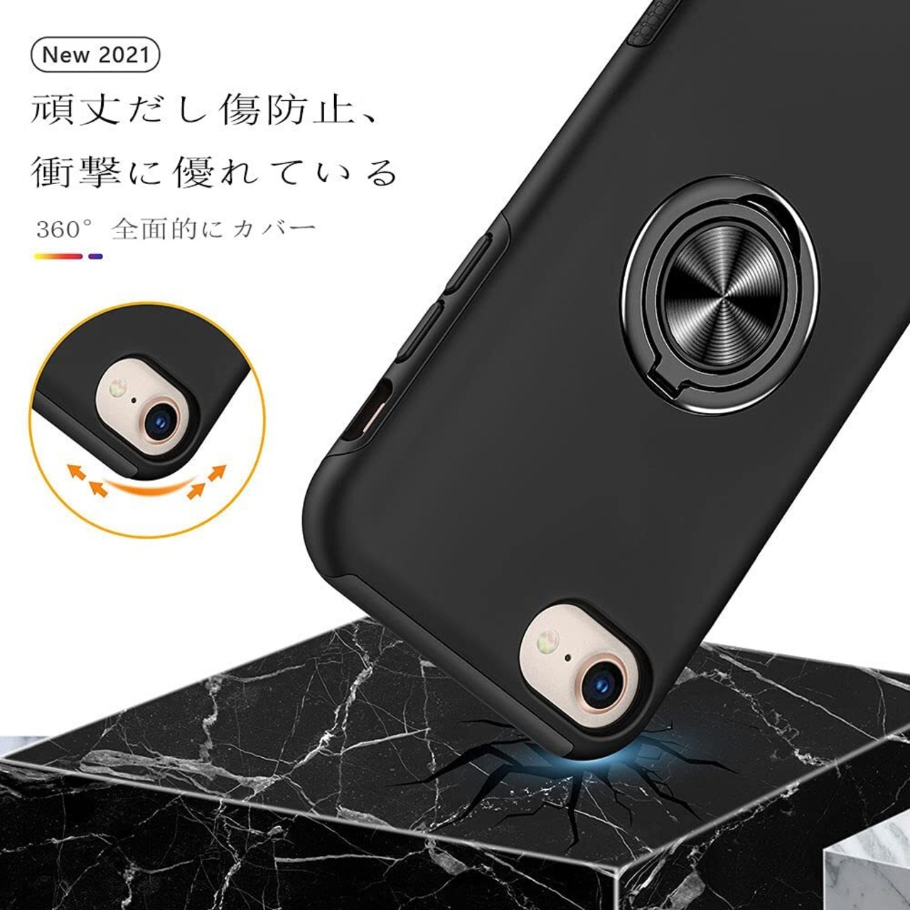 スマホケース iPhone SE ケース 第3世代 2020 アイフォン 8 7 se3 6s 6 対応 リング スタンド 付き 耐衝撃 + 4.7インチ 强化 ガラス フィルム 7ケース あいふぉん8 iPhone7 の 携帯 カバー ブラック