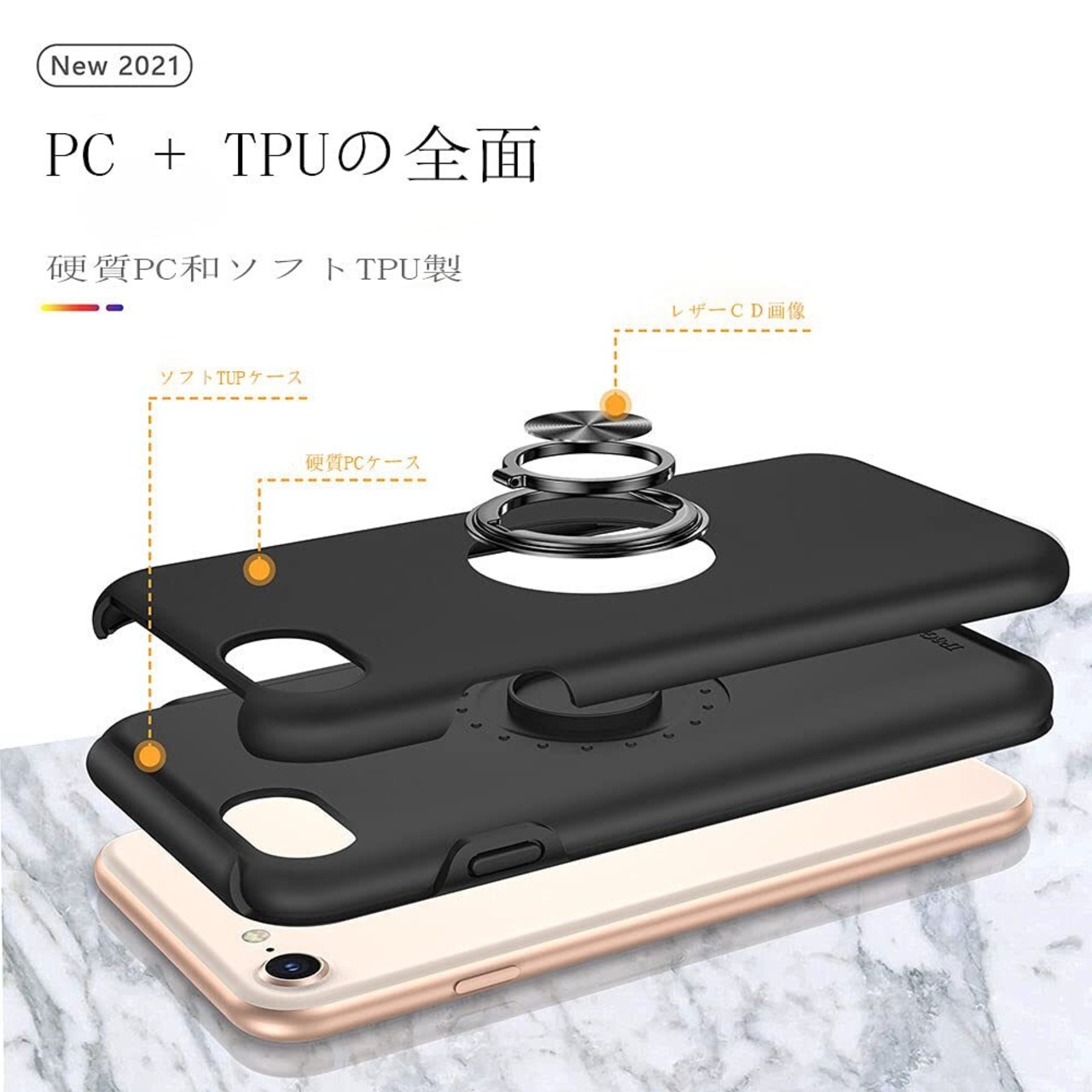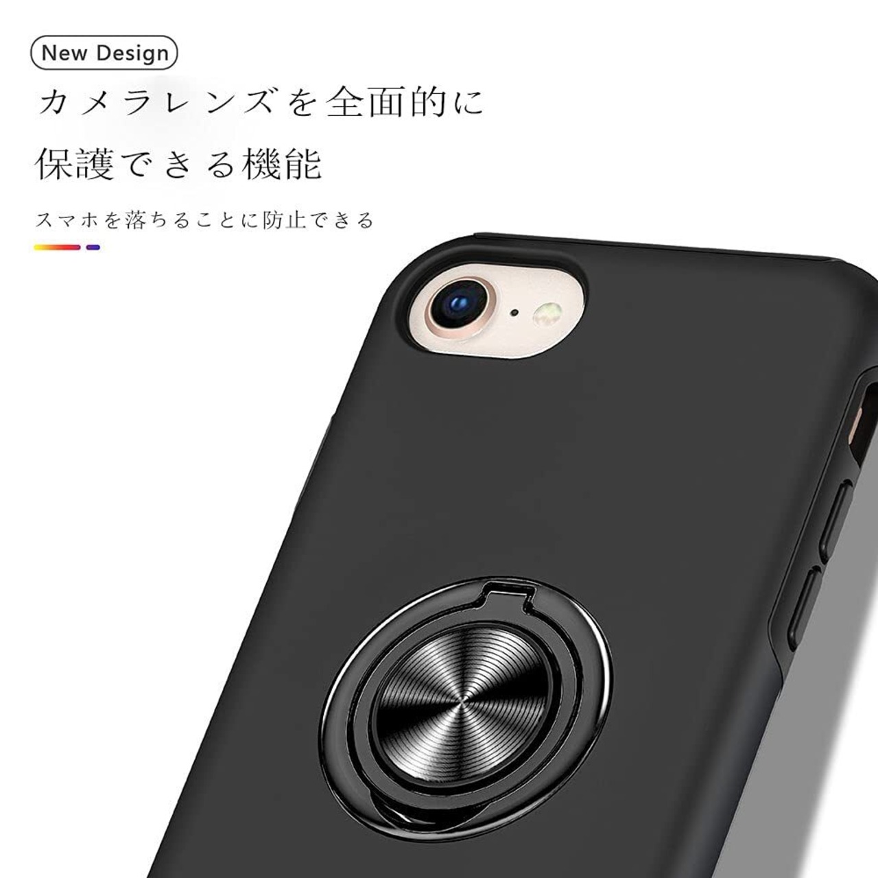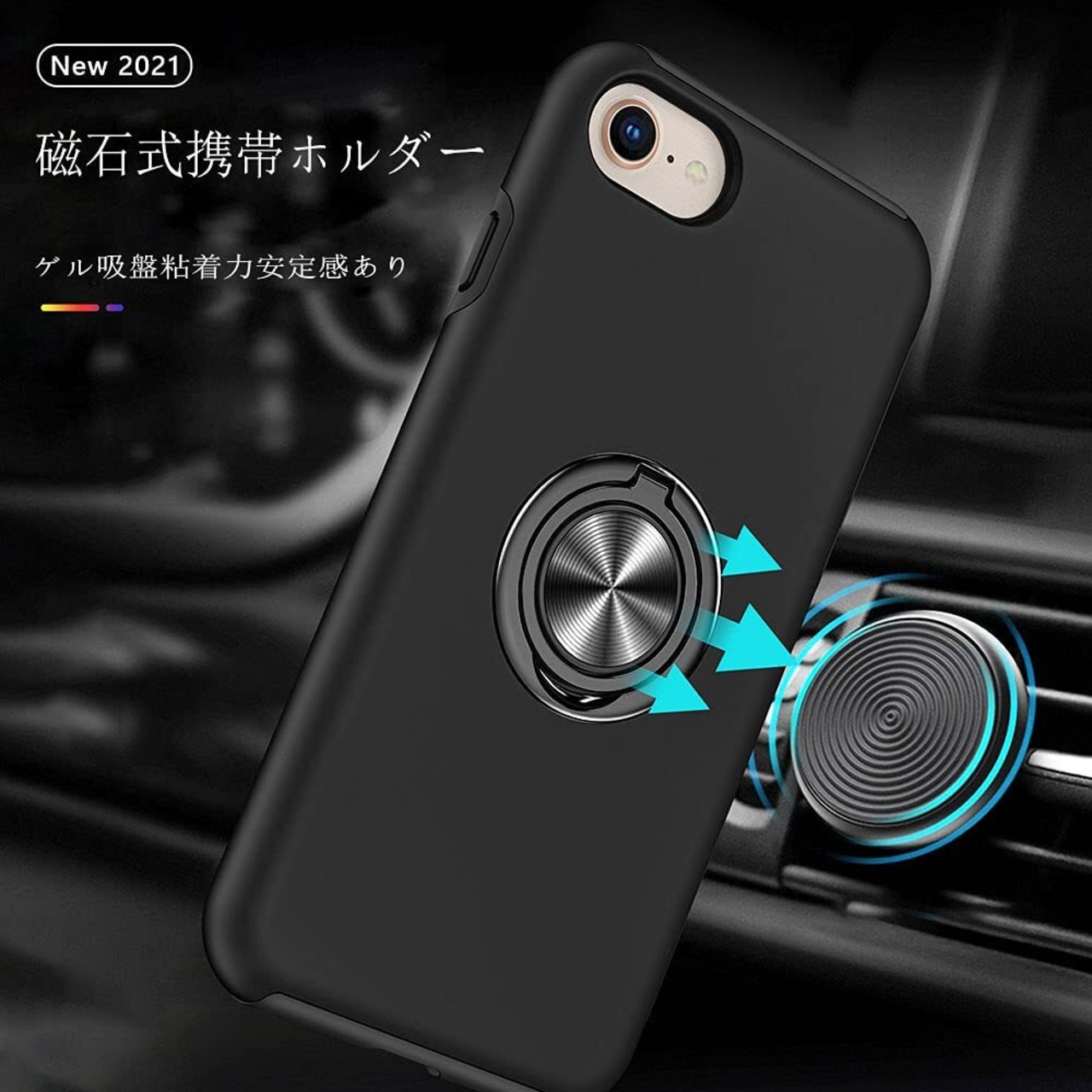 スマホケース iPhone SE ケース 第3世代 2020 アイフォン 8 7 se3 6s 6 対応 リング スタンド 付き 耐衝撃 + 4.7インチ 强化 ガラス フィルム 7ケース あいふぉん8 iPhone7 の 携帯 カバー ブラック