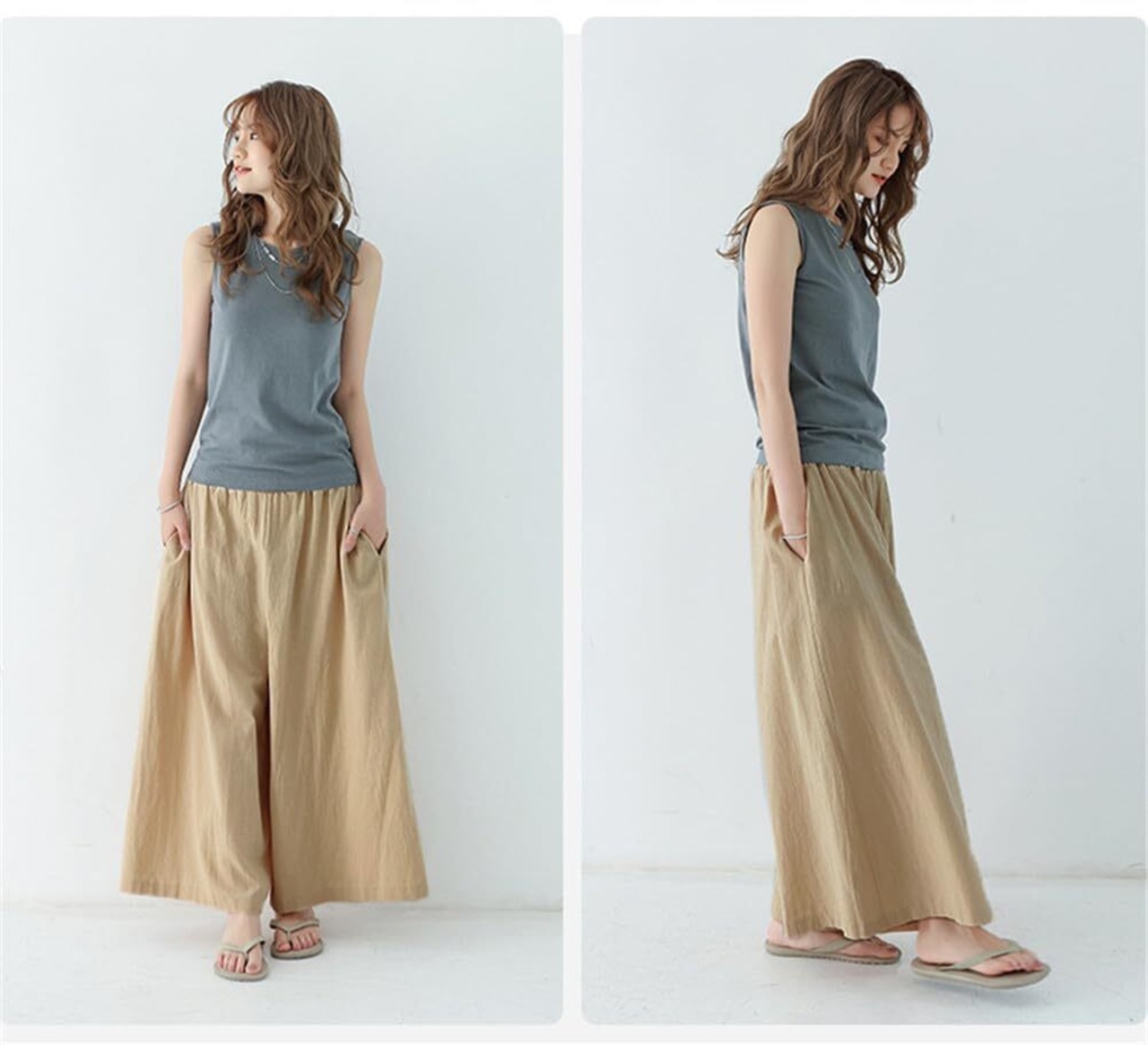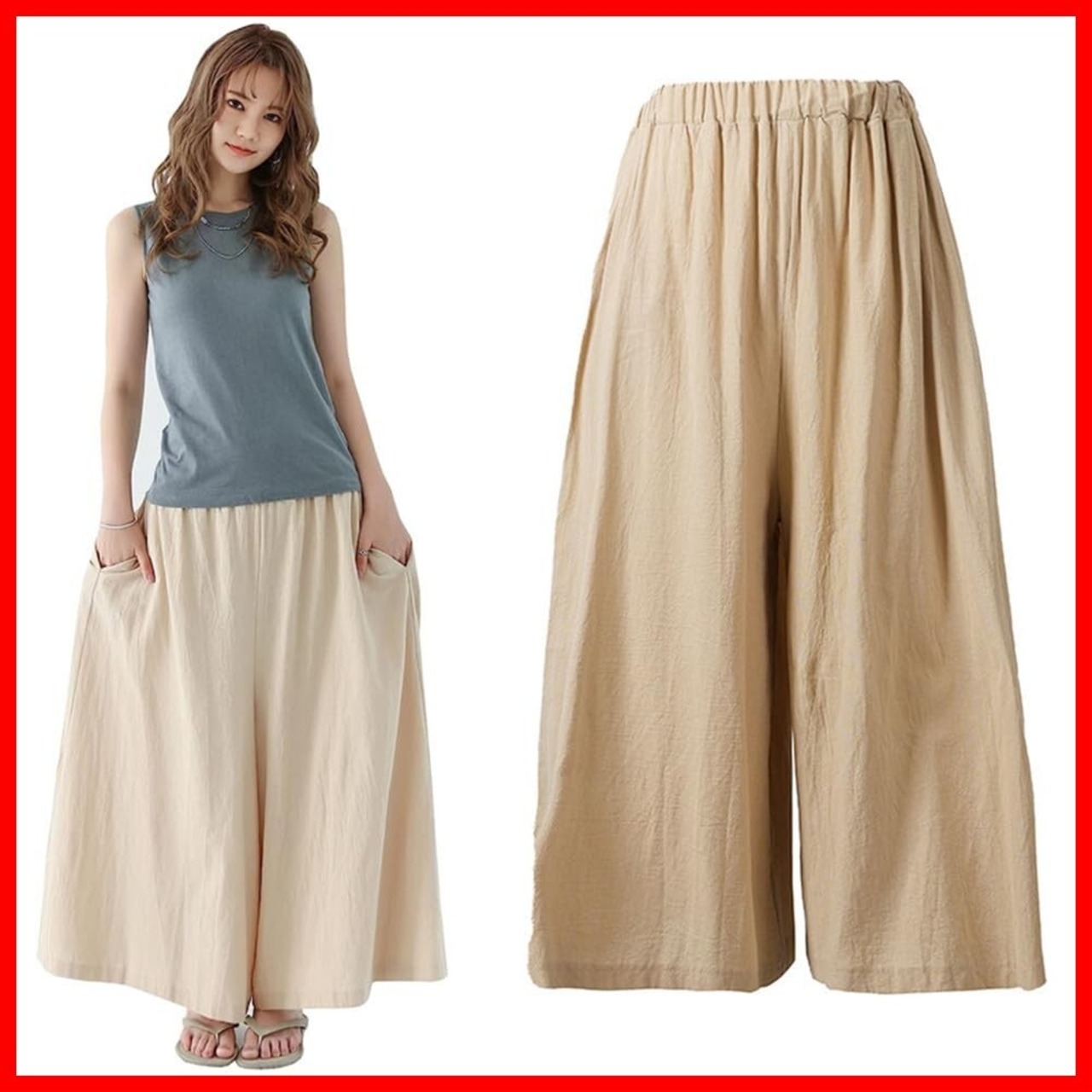 [Yingqible] レディース パンツ ワイドパンツ 綿麻 ゆったり リネン ガウチョパンツ ロングパンツ 無地 ゆったり 大きいサイズ 体型カバー 美脚 着痩せフリーサイズ オフィス 日常 春 夏 普段着 お出かけ (アプリコット)