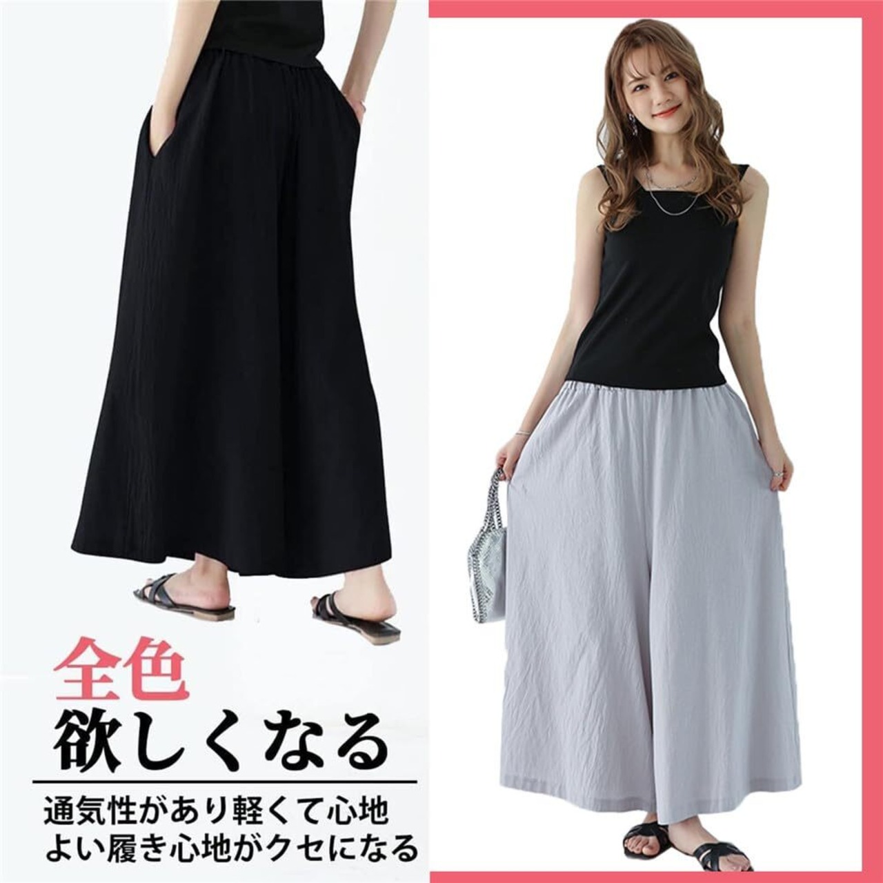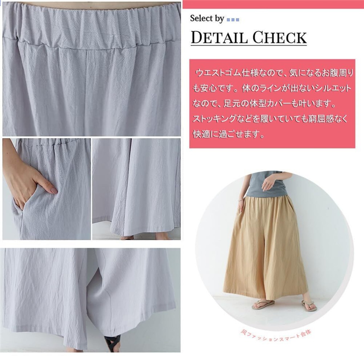 【特別なスカートらしいワイドパンツ】涼しげで軽やかな着心地で、大人のナチュラル着こなしに映える袴パンツが登場!スカートとパンツの両方の特徴を持つ、とてもスカートらしいワイドパンツです。レイヤードというデザインがファッション感を満足した。レディース ゆったり ズボン ラインを拾わず大きいサイズが下半身をすっぽり包み込み、体型カバー効果もバッチリ。