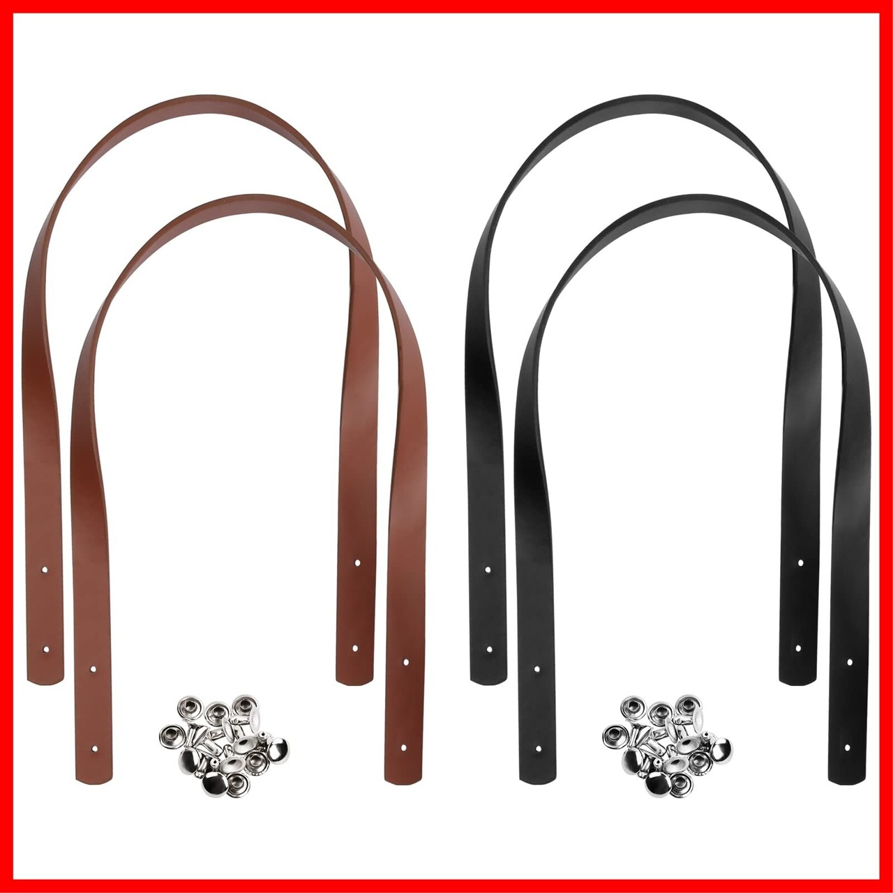 4本鞄 持ち手 修理 バッグ 持ち手 PU革 かばん持ち手 自分で セット カバン 持ち手 交換 修理 革 60cm 交換用ハンドル かばん用 付け替え ボタン付き バッグハンドル ハンドバッグ 財布 交換用 DIY ハンドメイド 修理(ブラック+ブラウン)