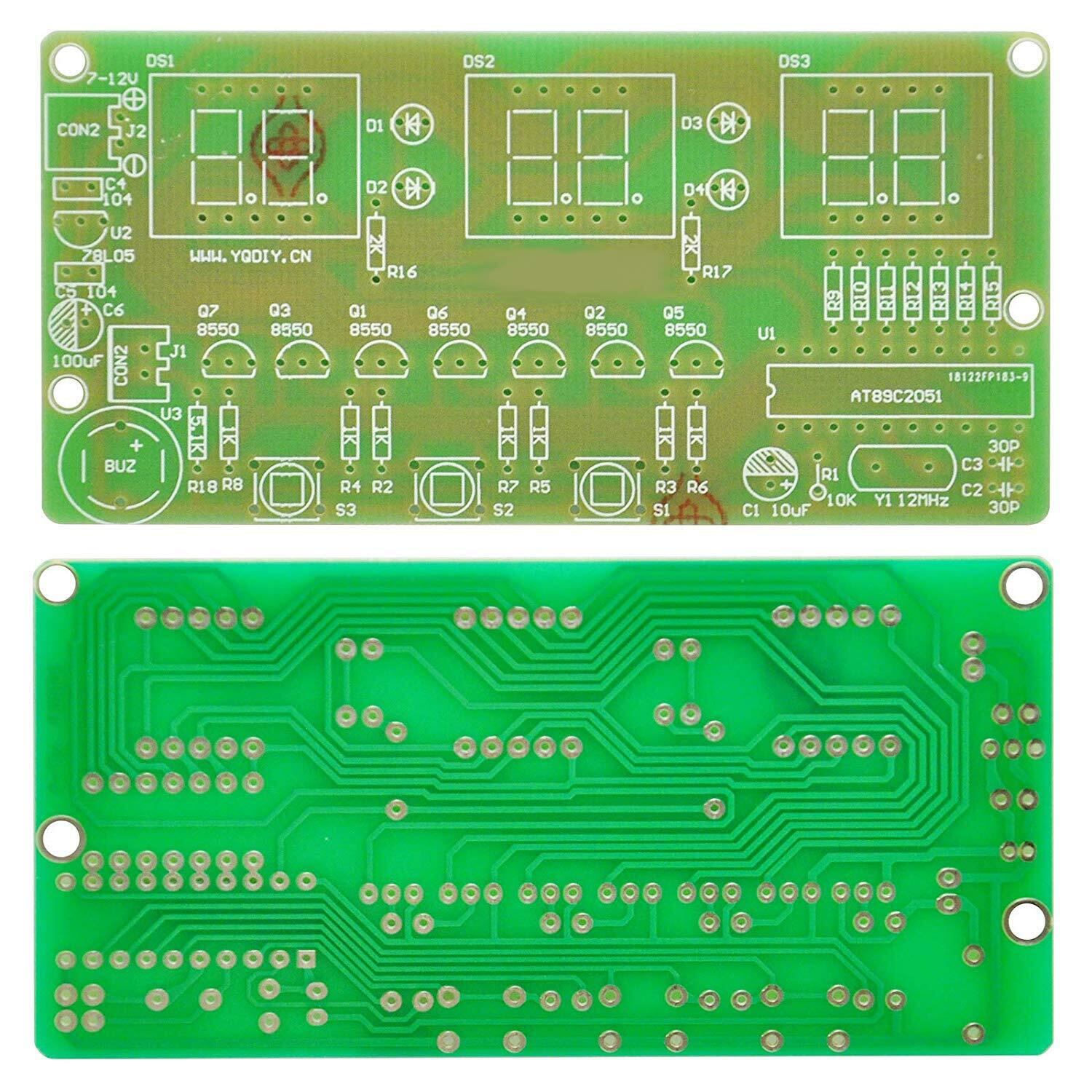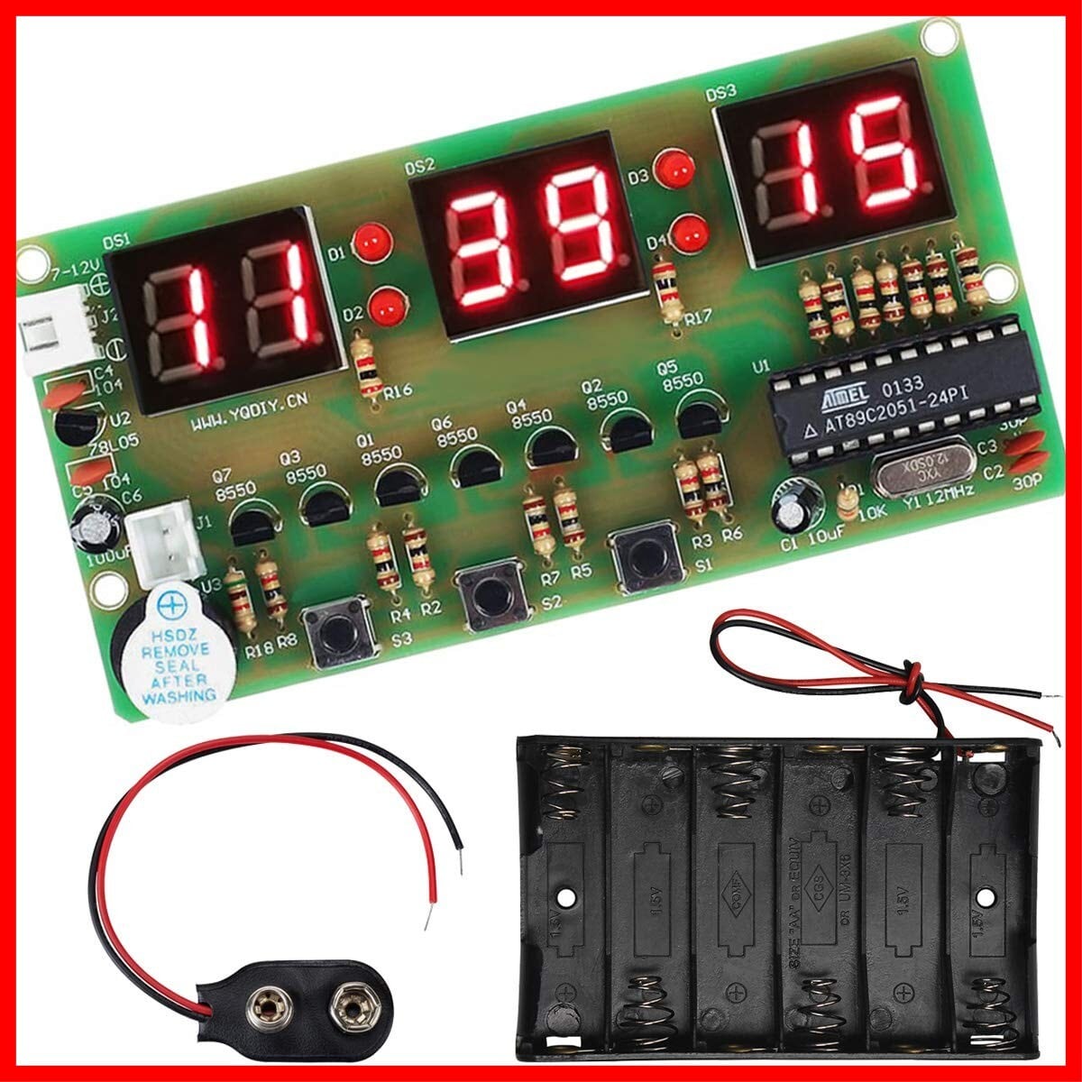 Youmile デジタル時計DIYキット6Bits C51 AT89C2051チップ電子目覚まし時計キットPCBボードはんだ付け練習用for Arduino用FR-4バッテリーホルダー付き