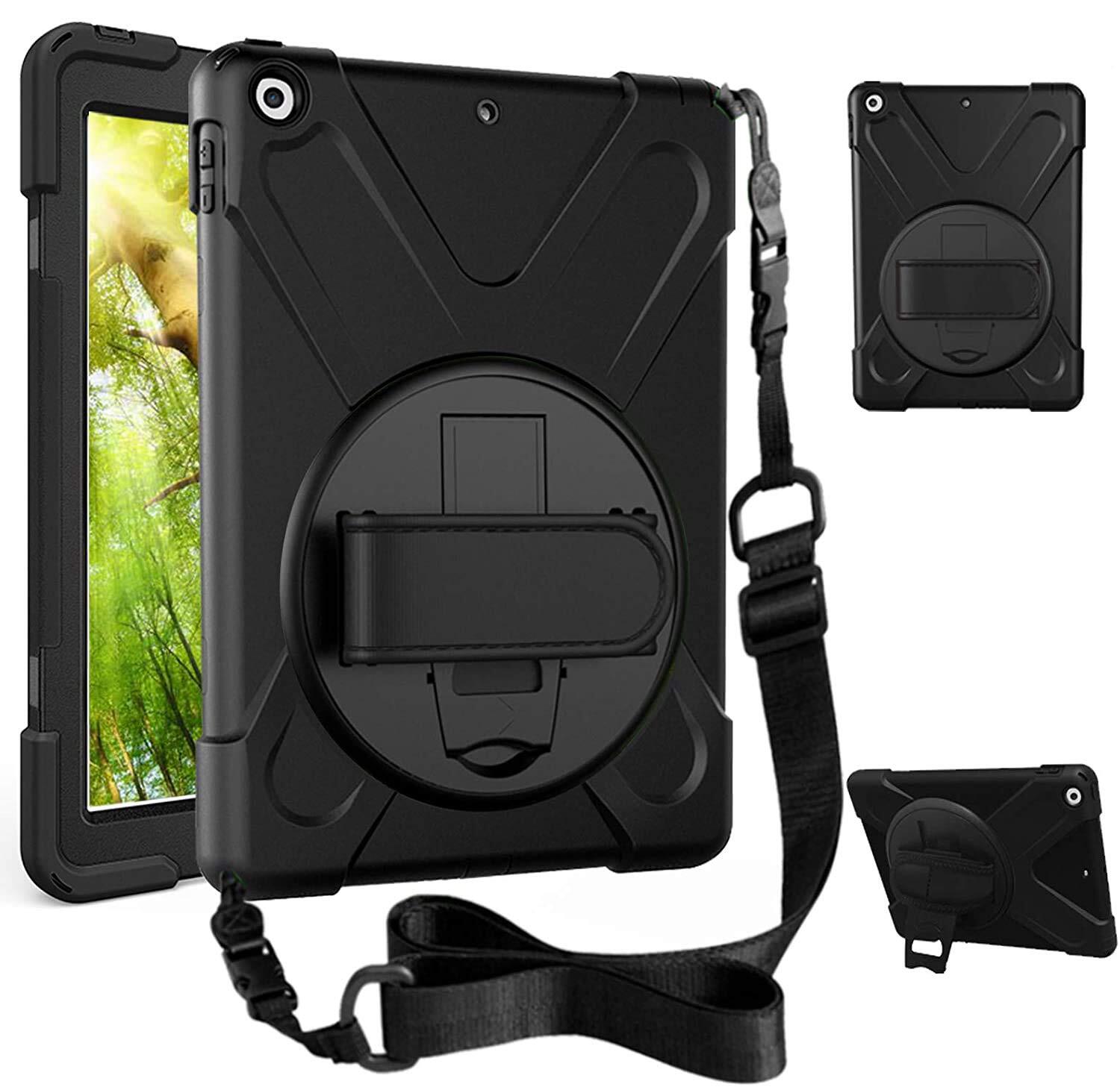 iPad 9世代 7世代 ケース iPad 8世代 ケース iPad 10.2 ケース 2021/2019/2020 SIBEITU 耐衝撃 衝撃吸収 スタンド ハンドストラップ 肩掛けー ショルダーストラップ 回転 頑丈 仕事用 防塵 傷つけ防止 ハード 子供 キッズ アイパッド 第七世代 10.2 カバー モデル A2200 A2198 A2197 ブラック