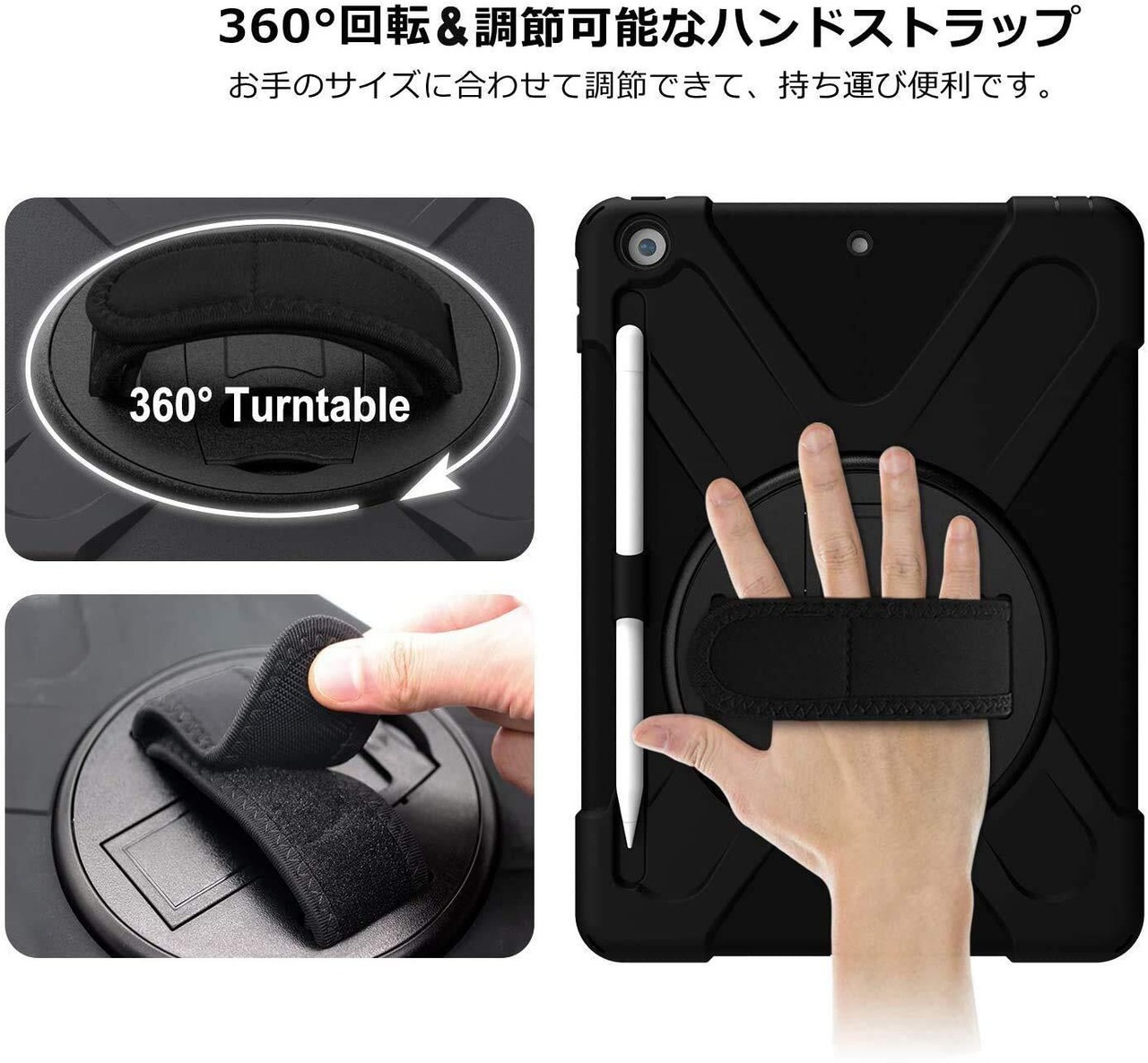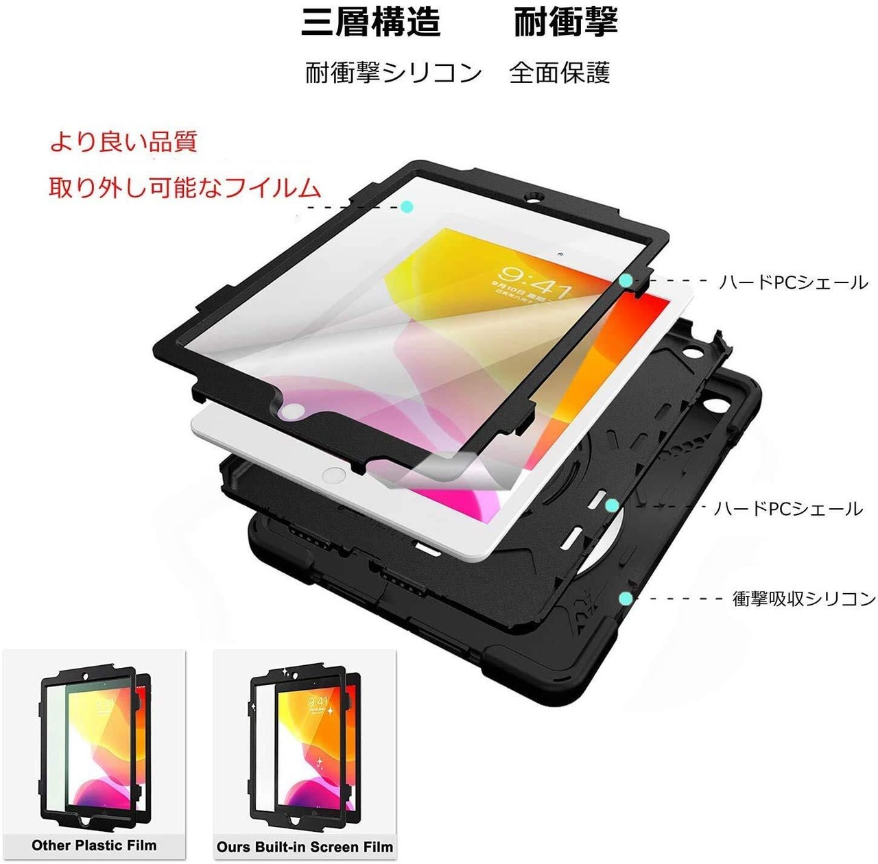 iPad 9世代 8世代 ケース iPad 7世代 ケース iPad 10.2 ケース 2020/2019/2020 保護フィルム SIBEITU 耐衝撃 衝撃吸収 スタンド ハンドストラップ 肩掛けー ショルダーストラップ 回転 頑丈 傷つけ防止 仕事用 防塵 ハード 子供 キッズ アイパッド 第七世代 10.2 カバー A2200 A2198 A2197