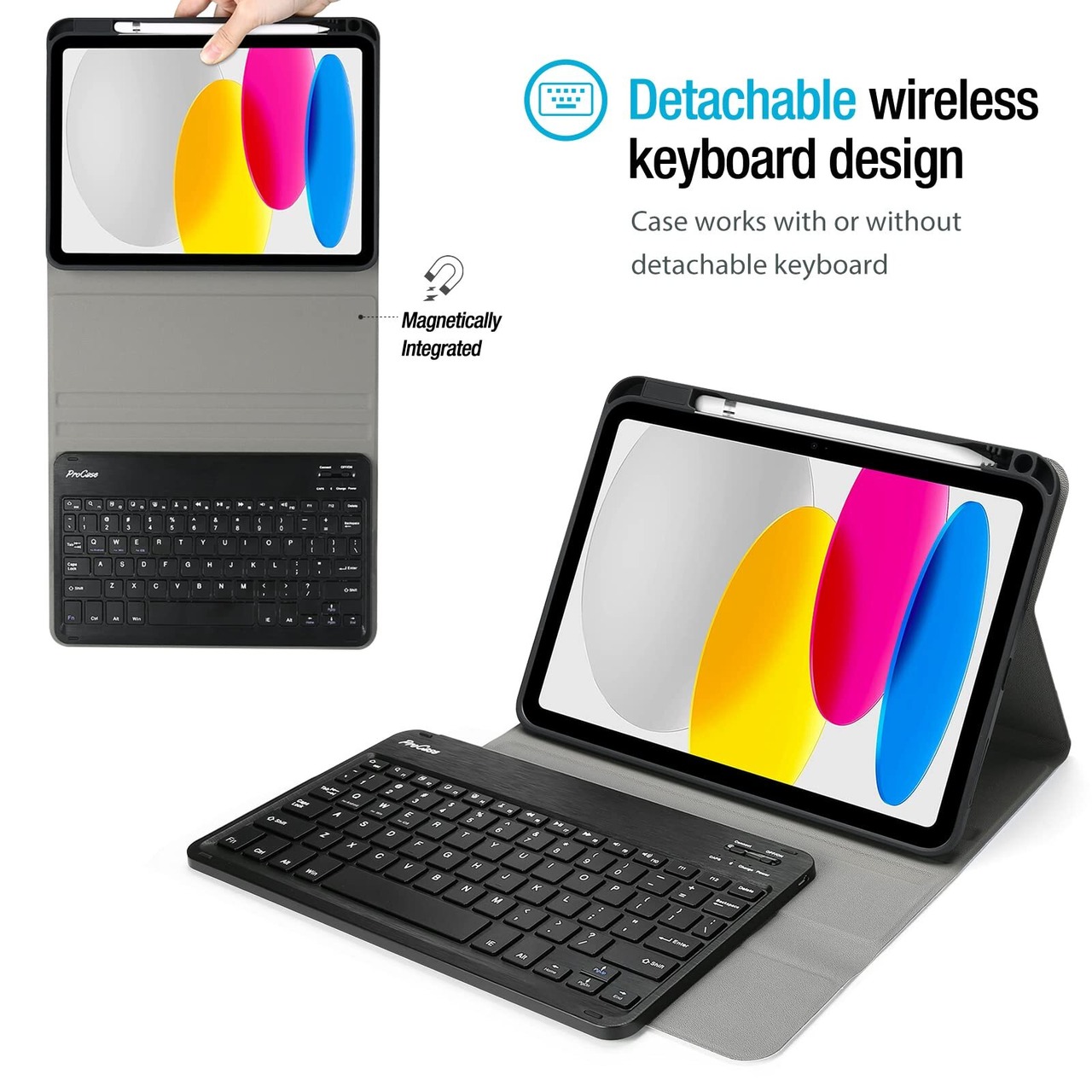 ProCase iPad 11世代/10世代 キーボードケース iPad(A16)11インチ 2025/10.9インチ 2022通用 スリムシェル 軽量 スマートカバー 磁気機能 取り外し可能なワイヤレスキーボード付き