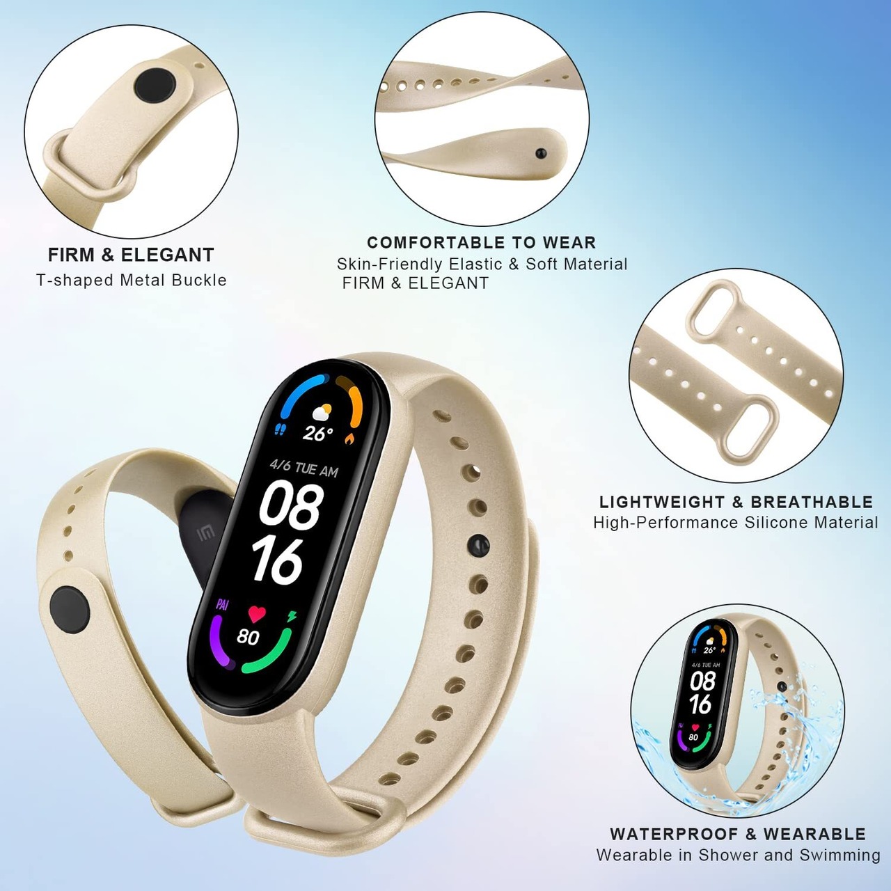 [Vancle] コンパチブル Xiaomi Mi Band 6/Mi Band 5 バンド 替えベルト シリコン製 交換ベルト 対応 Mi band 5/6 スマートバンド (ローズゴールド+ゴールド)
