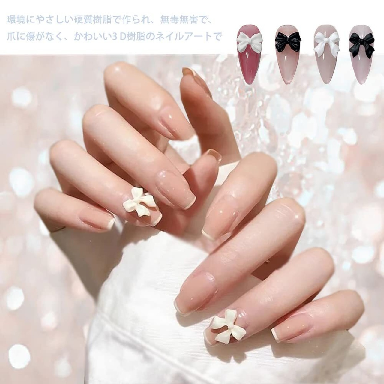 ネイルパーツ 3D 立体 蝶結び 半円パール 1セット ネイル装飾 DIY ジュエリーパーツ ハンドメイド 手作り デコパーツ ネイルアート レジン デコパーツ ブラック ホワイト