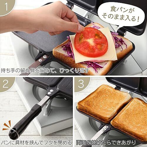 アイリスプラザ(IRIS PLAZA) ホットサンドメーカー 直火式 ガス火専用 2枚焼き ダブル お手入れ簡単 キャンプに使える ブラック 36×25×3cm