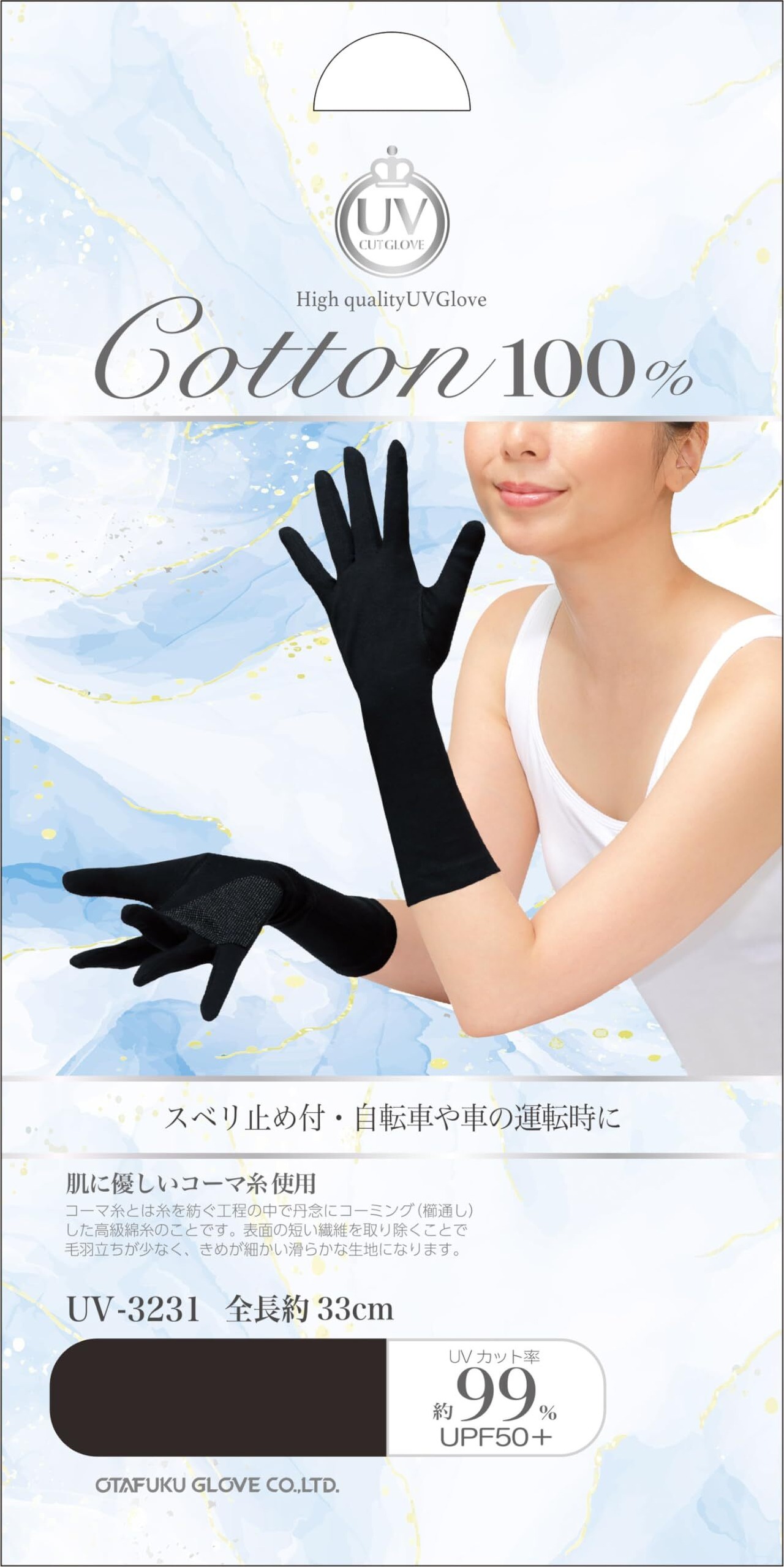 おたふく手袋 夏用アームカバー[コットン100% レディース用 スベリ止め付 セミロング] UV-3231 ブラック フリーサイズ