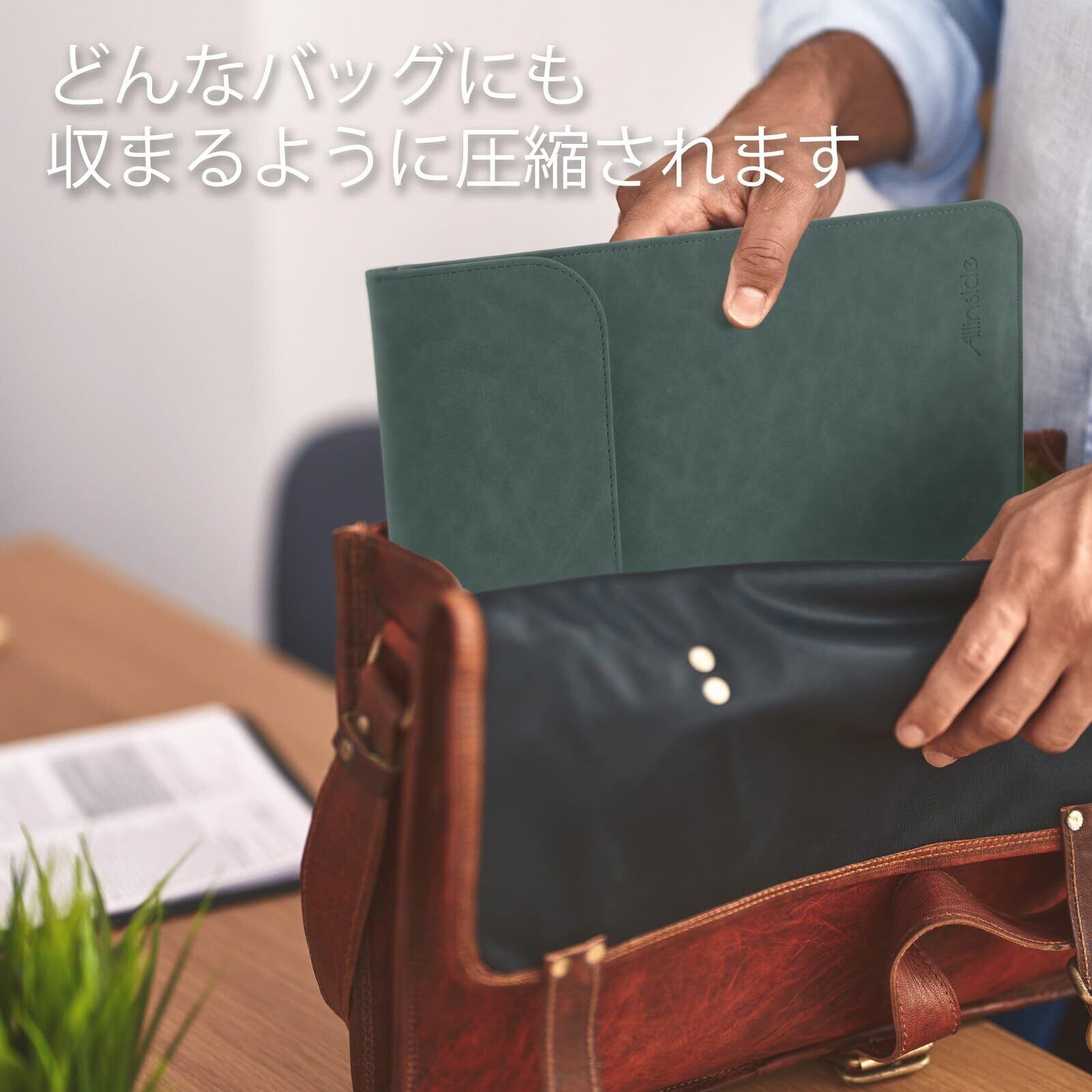 Allinside13-13.3インチ スリーブケース ノートパソコンケース MacBook Air 13.3 A1369 A1466/ MacBook Pro 13.3 A1425 A1502/ MacBook Pro 13 CD-ROM A1278 合成革 薄型 PCインナーバッグ 濃い緑色