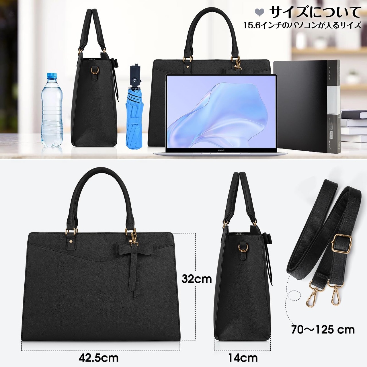 [RAINSMORE] トートバッグ レディース 通勤バッグ ビジネスバッグ 大容量 自立 a4対応 15.6インチpc対応 2way 肩掛け ファスナー付き 複数ポケット 仕事用バッグ 就活 通勤 オフィス ブラック black