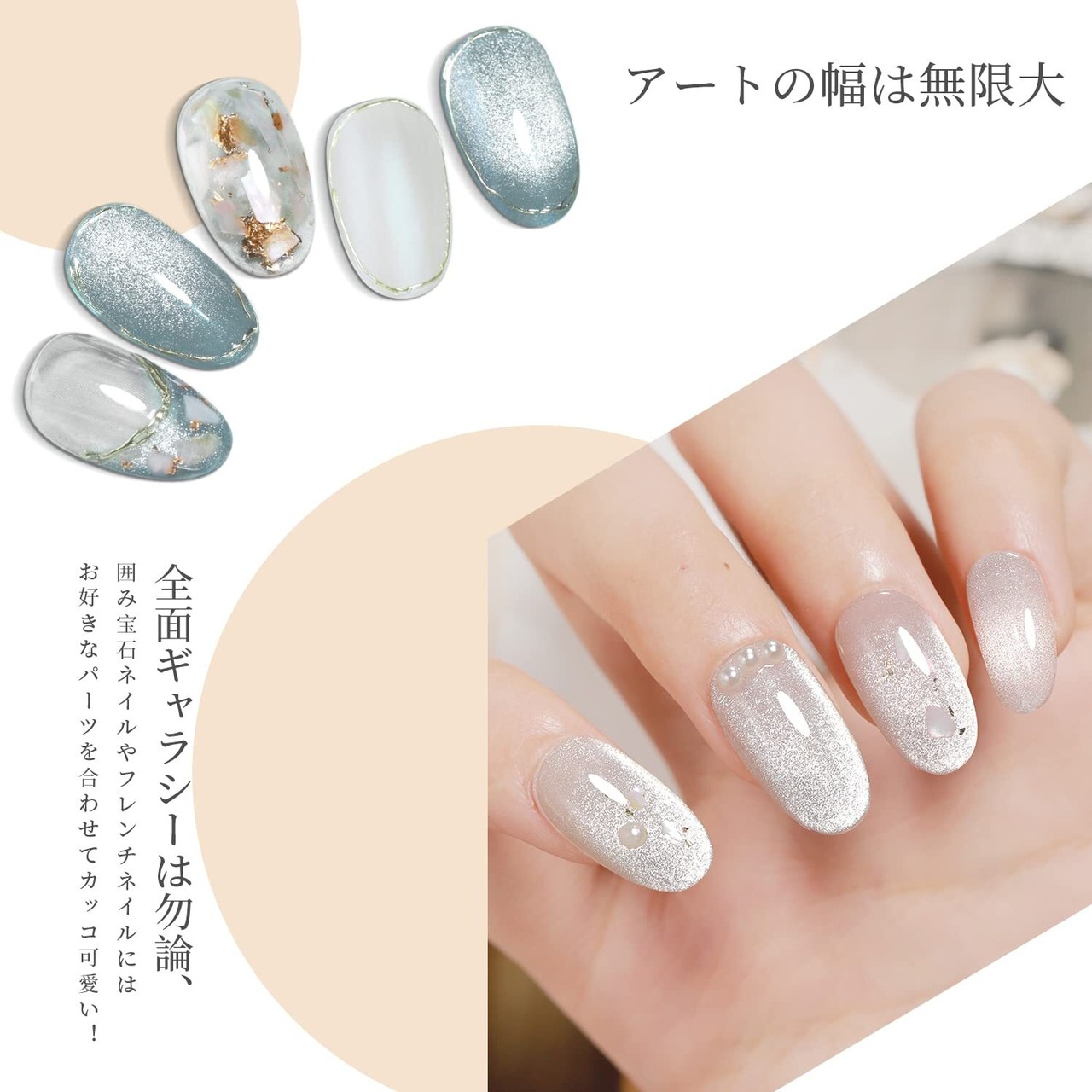 【クリアな透明感】マグネットネイルジェルはベースカラーがクリアカラーなので、 マグネットパウダー部分と透明感のクリアカラー部分の差が奥行のある新しい輝きへと導くジェルで、角度によって煌めくのでめっちゃキレイです。